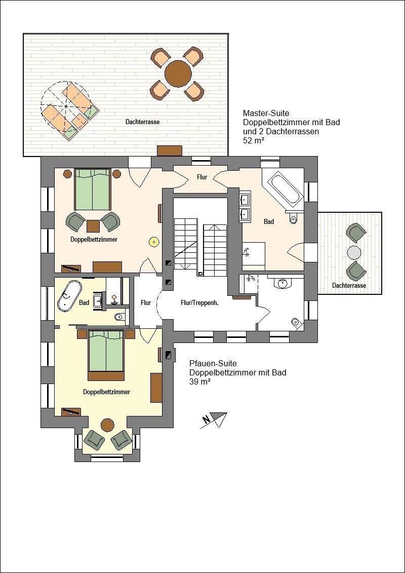 Unsere großzügige, außergewöhnliche und lichtdurchflutete Master-Suite mit 52 m² heißt bis zu 2 Gäste herzlich Willkommen! Es erwartet Sie eine voll ausgestattete Suite mit Vollbad und 2 Dachterrassen in bester Lage. Wir freuen uns auf Ihren Besuch!