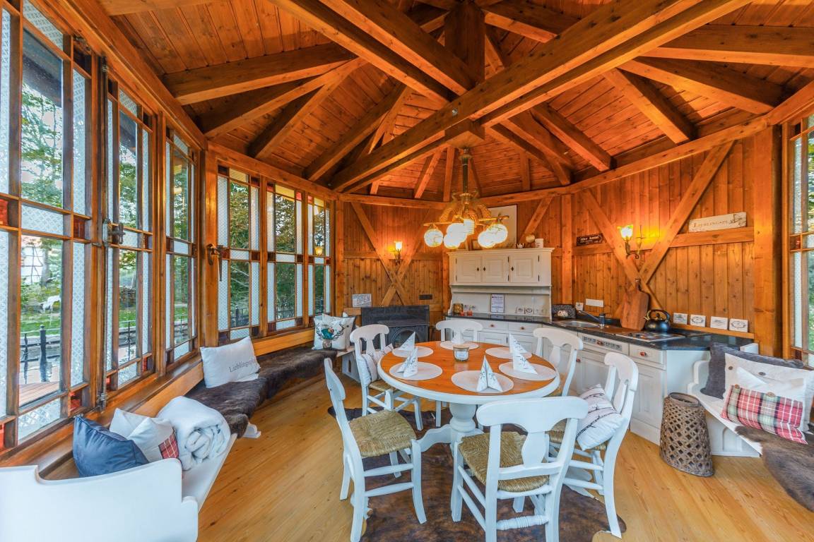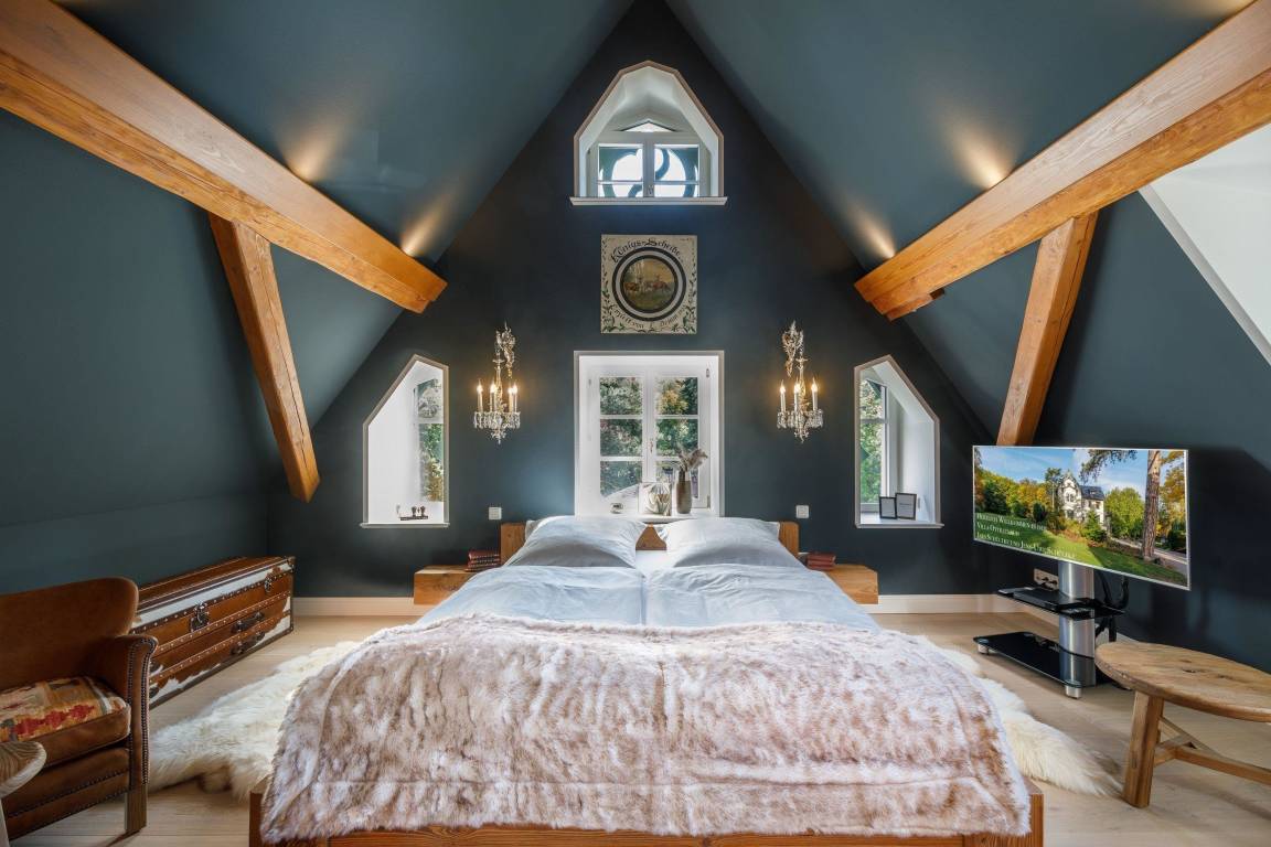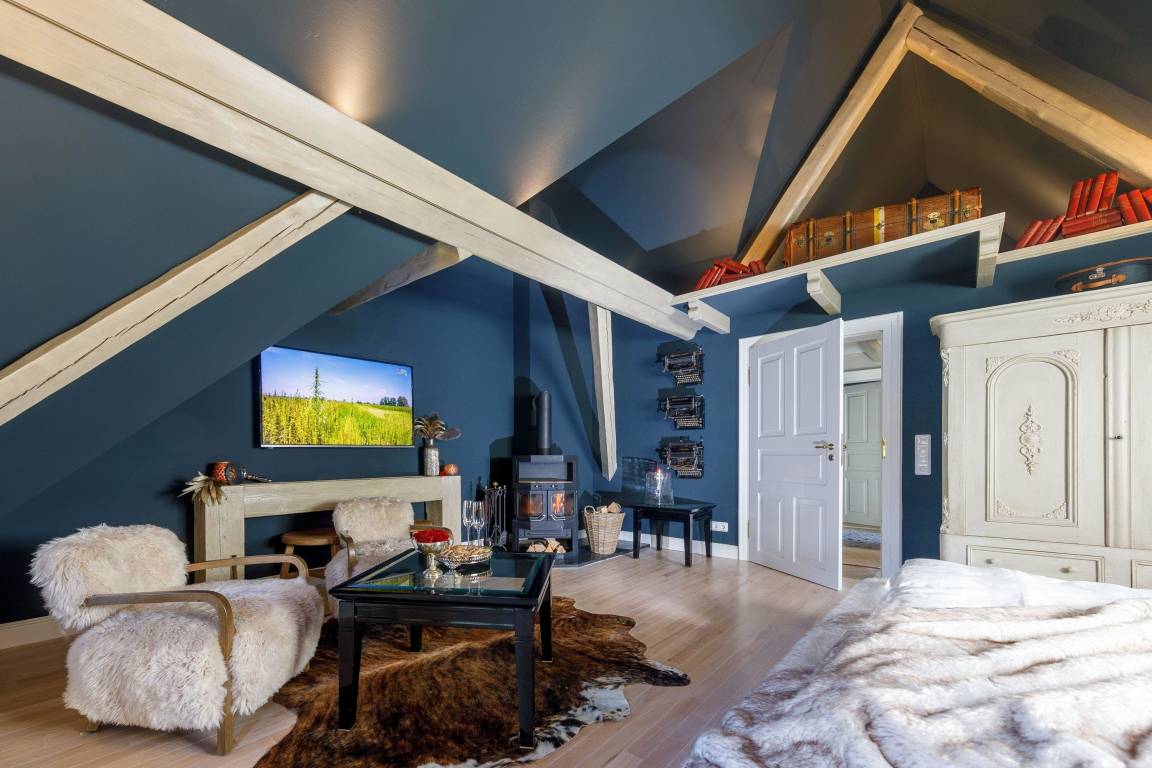 Das Markenzeichen der neu fertiggestellte Ottilien-Suite ist das einladende kuschlige Yeti-Doppelbett, welches mit dem Kaminofen eine außergewöhnliche Atmosphäre bildet und zum Verweilen einlädt. Die Suite besitzt einen kleinen Balkon, von wo aus Sie einen wunderschönen Blick über den Naturteich in den historischen Park haben. Ergänzt wird diese Suite durch einen weiteren Wohn-/ Schlafraum mit individuellen Doppelbett und Interieur, weshalb sich diese Suite insbesondere für Familien oder befreundete Paare eignet. Die Zimmer sind durch einen kleinen Flur verbunden, von wo aus das ebenfalls stilvoll eingerichtete Duschbad zu erreichen ist. Das Kaminzimmer im Erdgeschoss mit seiner angrenzenden Terrasse und Hausbar lädt am Abend zu Treffs in gemütlicher Atmosphäre und zum Ausklang des Tages ein. Ihre Unterkunft befindet sich in idyllischer Lage und ist doch sehr zentrumsnah. Das individuelle Frühstück können unsere Gäste im Wintergarten oder wer es mag, ganz persönlich in der Küchen-Veranda einnehmen. Die Begleitung Ihrer Haustiere bedarf einer konkreten Anfrage. Seit 01.05.23 ist auch unsere Sauna und der angrenzende Badeteich mit Kneippinsel fertiggestellt.