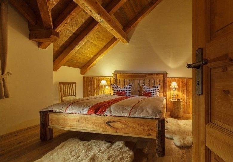 Zum Wohlfühlen sind die 3 Schlafzimmer mit je einem Doppelbett aus Tischlerhand gefertigten, aufgearbeiteten Altholz.