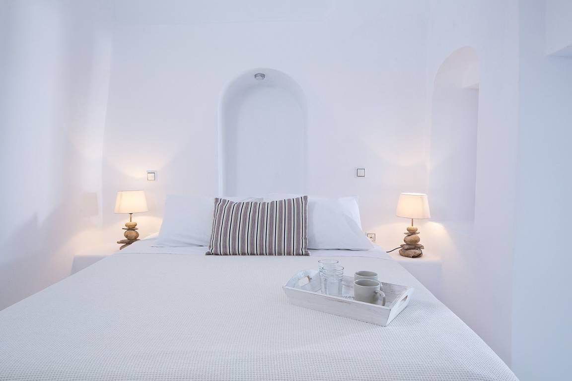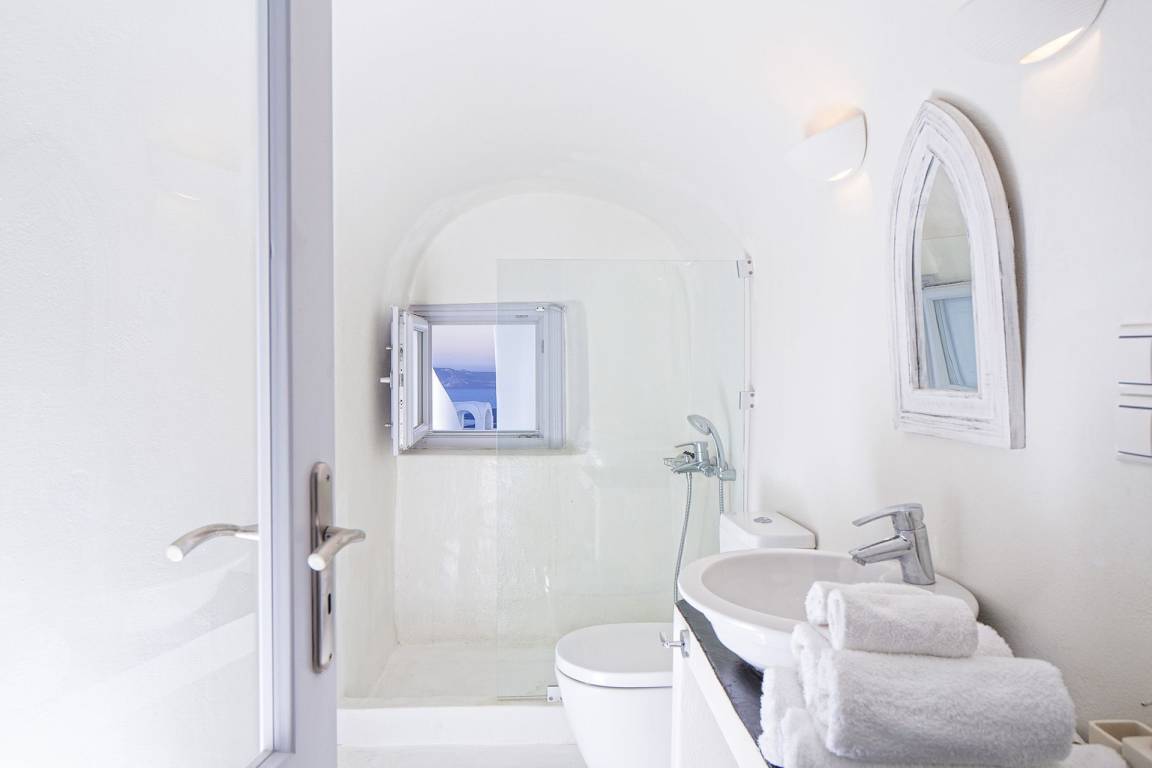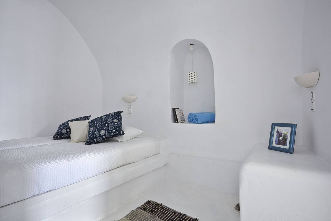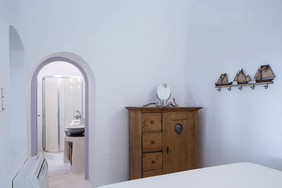 Villa Eros ist eine Villa mit einer Gesamtfläche von etwa 200 Quadratmetern, verteilt auf mehrere Ebenen, mit Platz für bis zu 7 Gäste, 3 Schlafzimmern und 4 Bädern. Das Erdgeschoss umfasst die Wohnbereiche und die Küche, die sich zu den Außenbereichen öffnen. Die 3 Schlafzimmer sind auf die verschiedenen Ebenen der Villa verteilt und bieten unterschiedliche Schlafkonfigurationen. Die 4 Bäder sind über die gesamte Immobilie verteilt und mit hochwertigen Einrichtungen ausgestattet. Die Innenräume gehen fließend in die Außenbereiche über und bieten Ausblicke auf die Caldera.