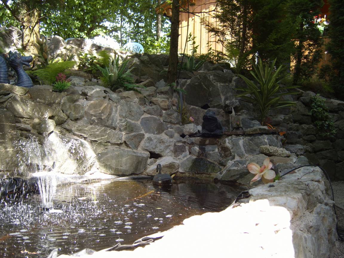 An heißen Tagen lädt die Bank am Teich zum Verweilen ein.