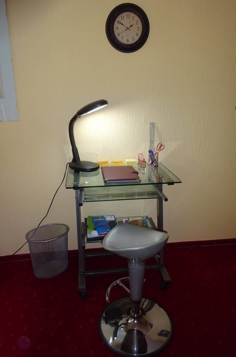 Einem Arbeitsplatz für Laptop mit Tageslichtbeleuchtung und Büromaterial.