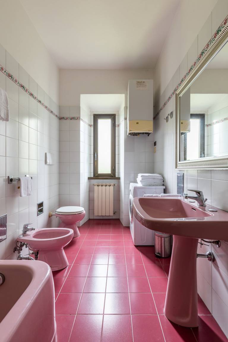 Badezimmer: Waschbecken, WC, Bidet, Badewanne, Fön, Waschmaschine, WiFi Internet.