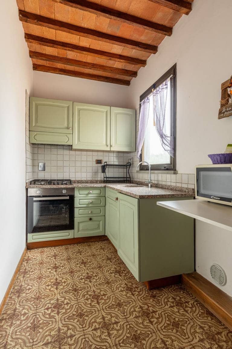 Essen mit Freunden und Familie ist ein wichtiger Bestandteil der toskanischen Kultur. Nutzen Sie die gut ausgestattete Küche, um Mahlzeiten aus lokalen Produkten vorzubereiten, während Sie im Urlaub sind. Die Küche kommt mit Kaffeemaschine, Mikrowelle, Herd und Kühlschrank, sowie ausreichend Geschirr und Besteck für bis zu sechs Personen.