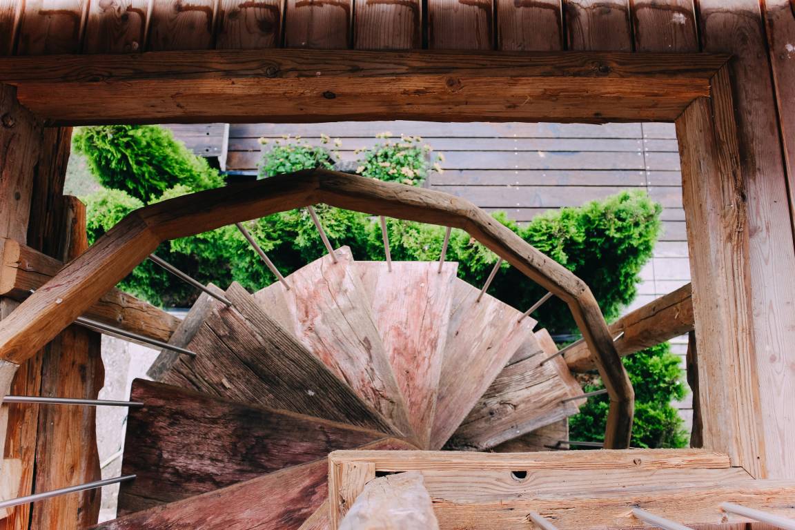 Das Studio befindet sich im ersten Stock und ist über eine leicht steile Außen-Wendeltreppe über die Balkonterrasse erreichbar. Leider ist es nicht barrierefrei zugänglich.
