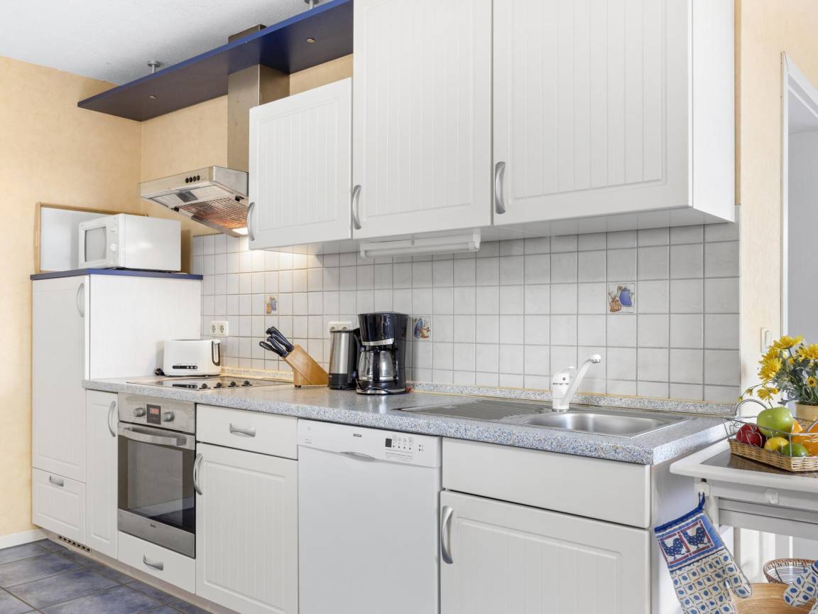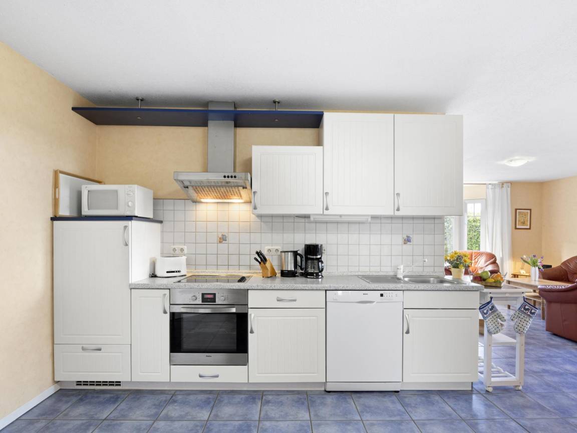 Layout : Parterre: offene Küche mit Wasserkocher, Toaster, Kochherd(Ceranfeld), Dunstabzugshaube, Kaffeemaschine(Filter), Backofen, Mikrowelle, Geschirrspüler, Kühl-/Gefrierkombination , Wohn/Esszimmer mit TV(Flatscreen), Esstisch(5 Personen), Sitzecke, Stereoanlage , 2x Schlafzimmer mit Doppelbett king size(180 x 200 cm) , Badezimmer mit Waschbecken, Dusche, Toilette