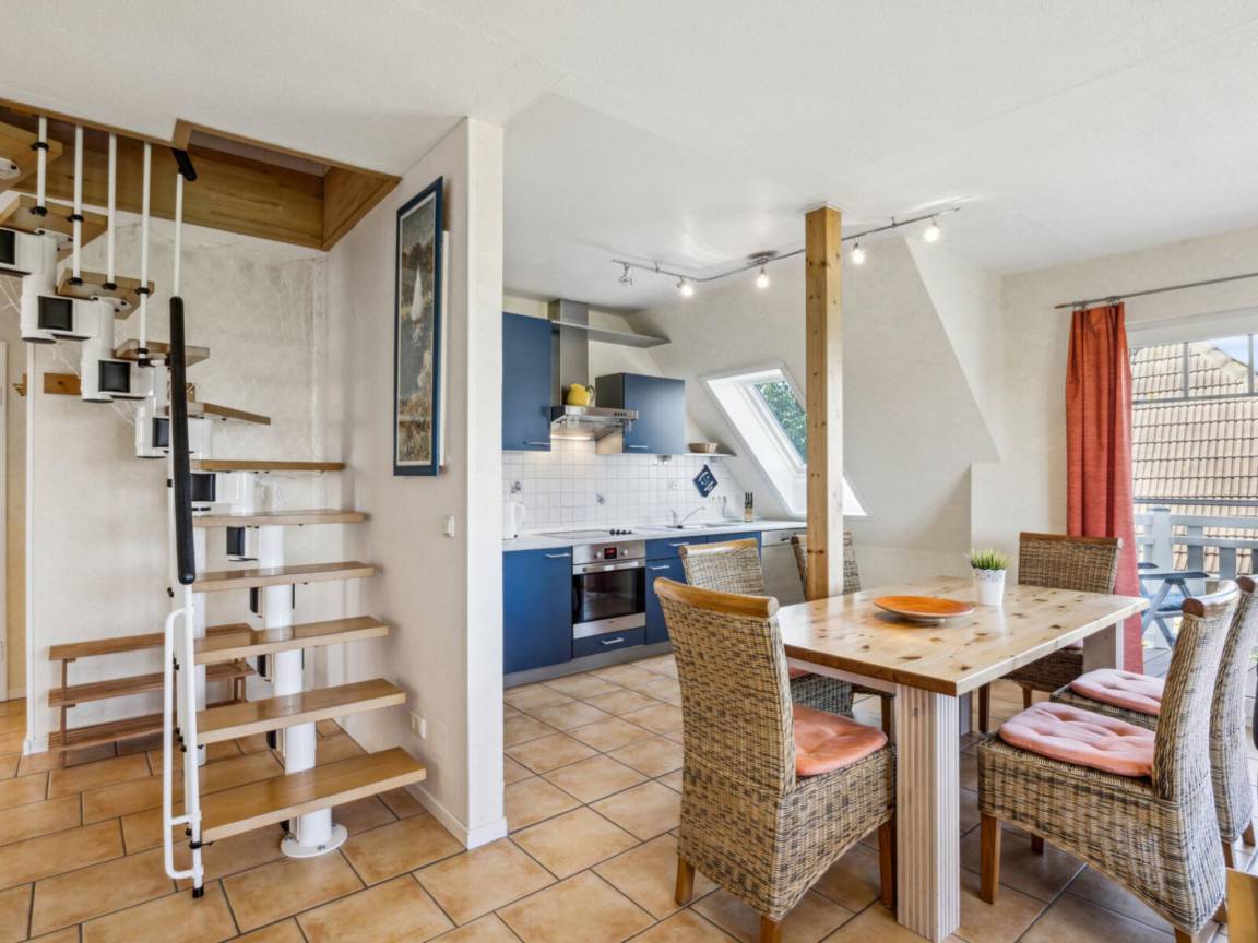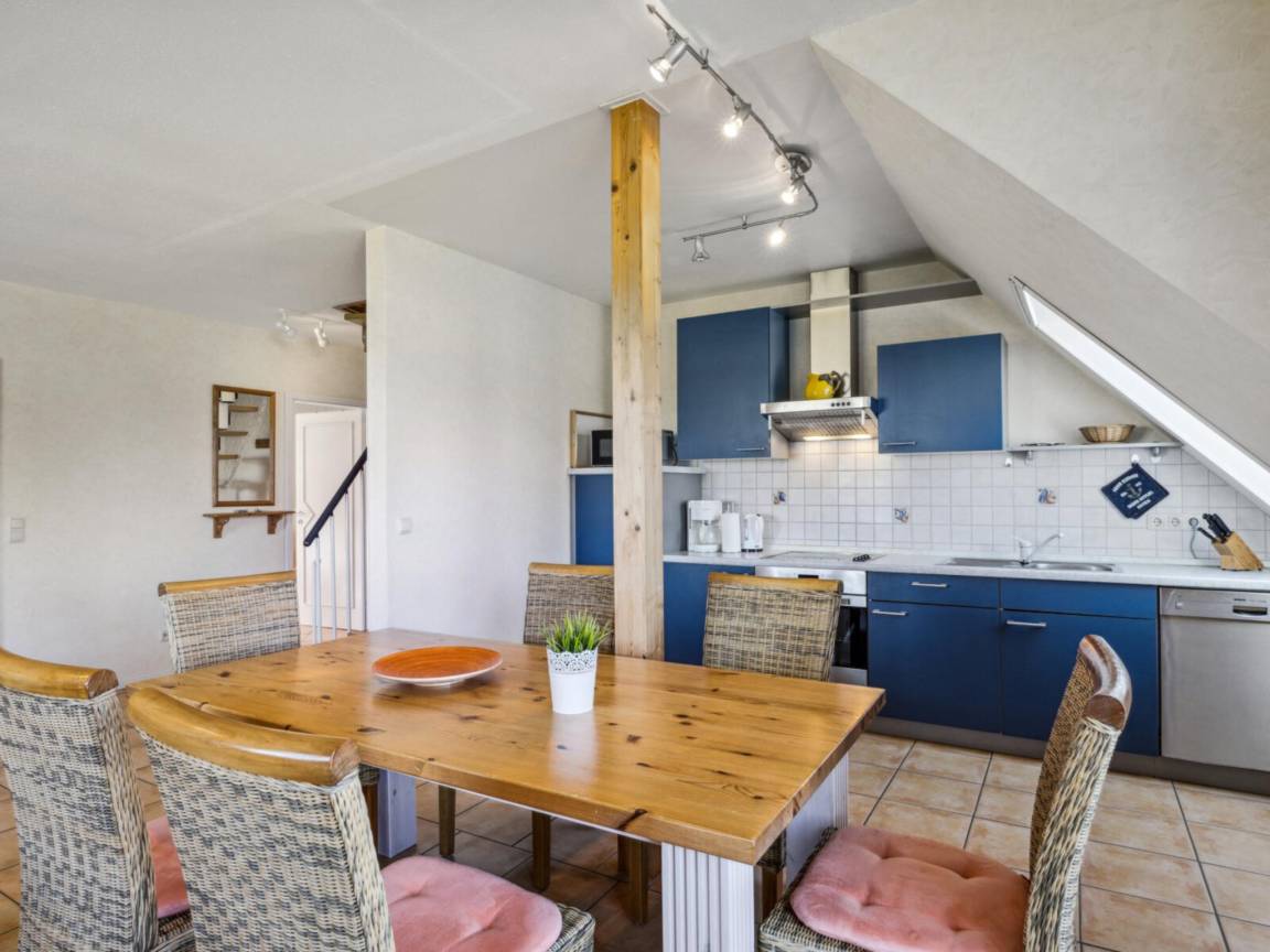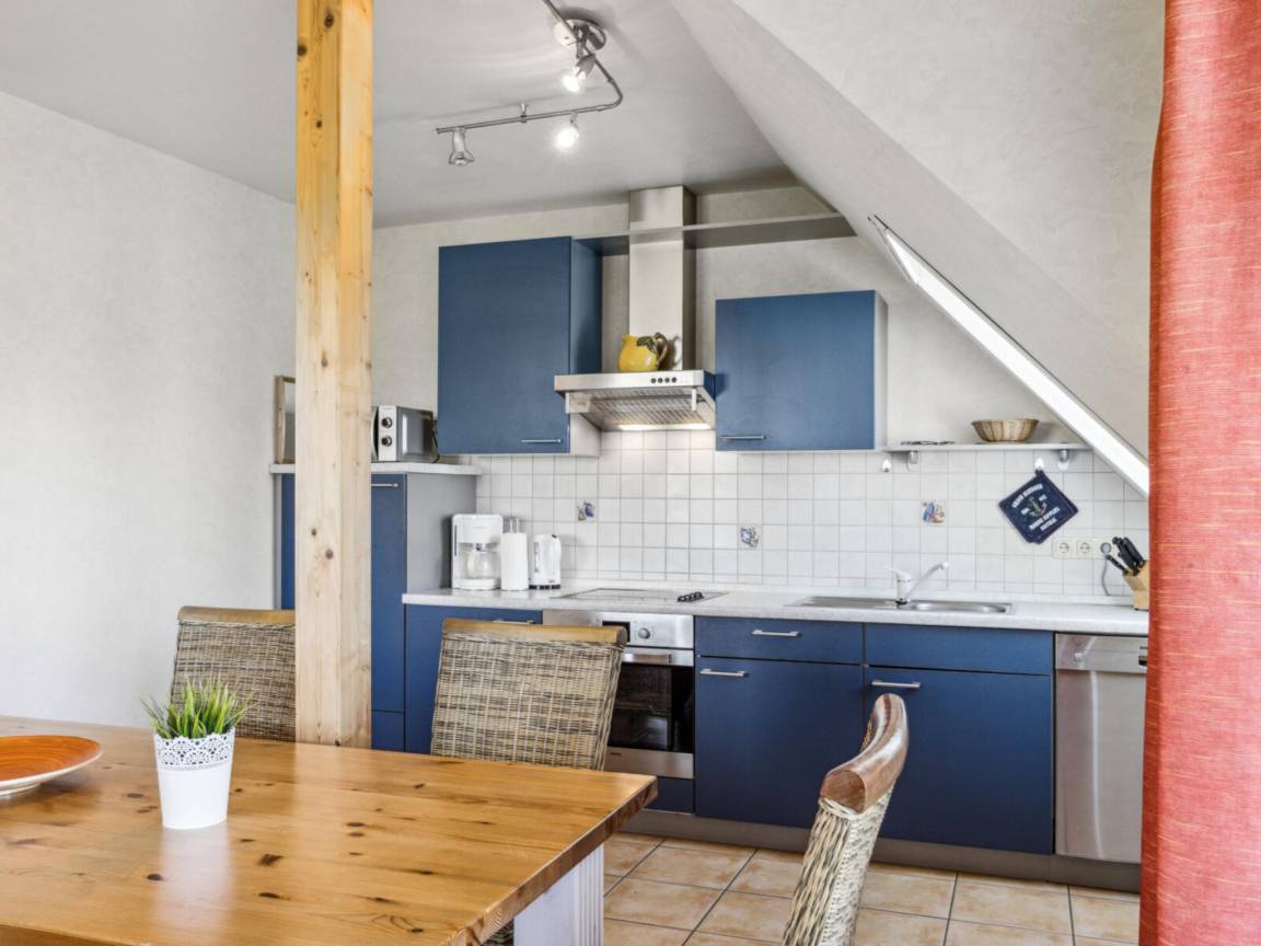 Layout : In der 1. Etage: offene Küche mit Wasserkocher, Kochherd(Ceranfeld), Dunstabzugshaube, Kaffeemaschine(Filter), Backofen, Mikrowelle, Geschirrspüler, Kühl-/Gefrierkombination , Wohn/Esszimmer mit TV(Flatscreen), Esstisch(5 Personen), Sitzecke , Schlafzimmer mit Doppelbett king size(180 x 200 cm) , Badezimmer mit Waschbecken, Dusche, Toilette