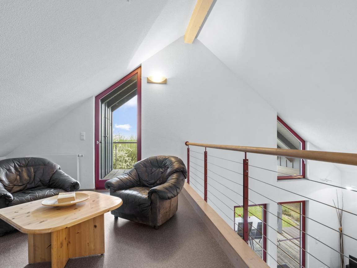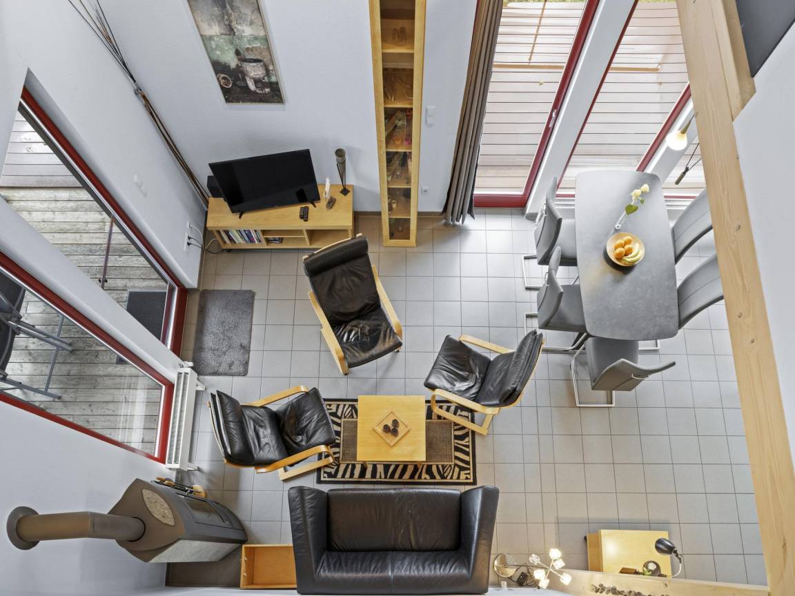 Layout : Parterre: offene Küche mit Wasserkocher, Toaster, Kochherd(Ceranfeld), Dunstabzugshaube, Kaffeemaschine(Filter), Mikrowelle, Geschirrspüler, Kühl-/Gefrierkombination , Wohn/Esszimmer mit TV(Flatscreen), Esstisch(5 Personen), Kamin, Ofen(Holz), Sitzecke , Schlafzimmer mit Doppelbett(Zwei Einzelbettdecken, 180 x 200 cm) , Badezimmer mit Waschbecken, Dusche, Toilette, Waschmaschine , Badezimmer mit Badewanne, Waschbecken, Toilette , Infrarotsauna(2 Personen), 2x Balkon oder Terrasse