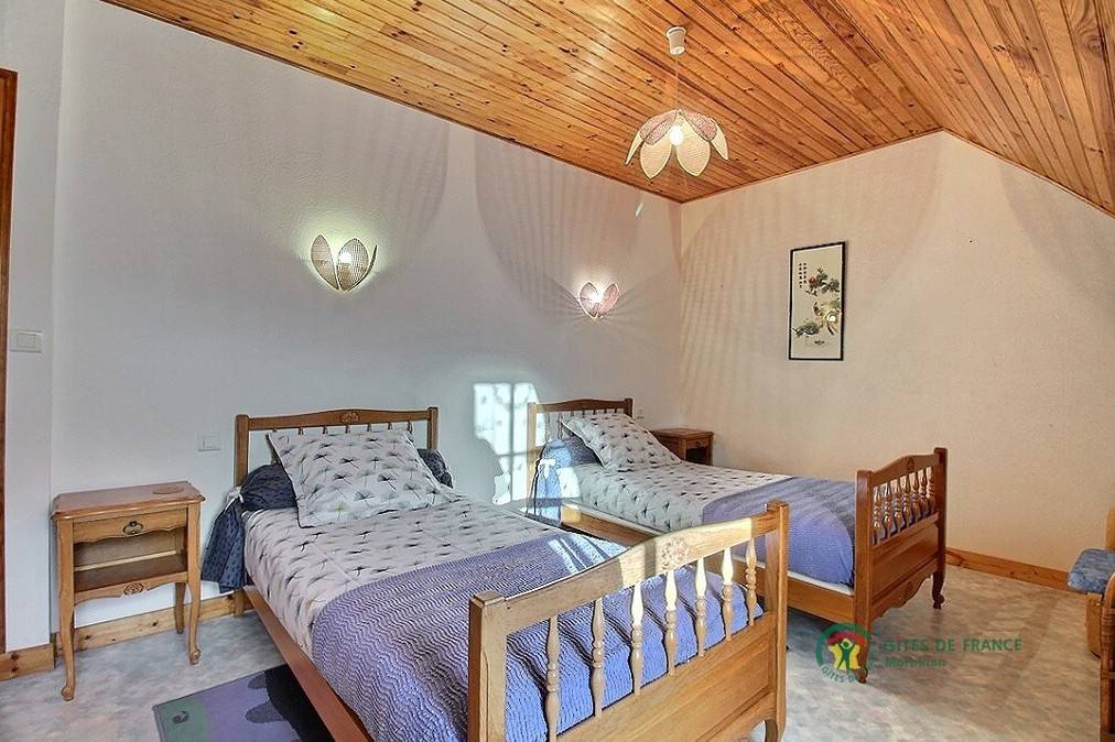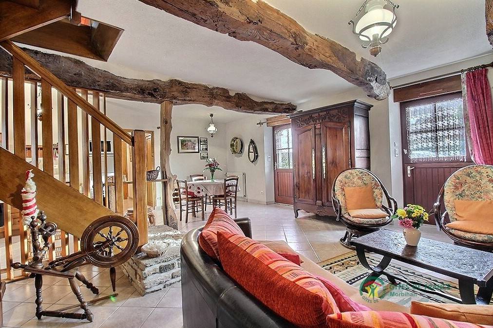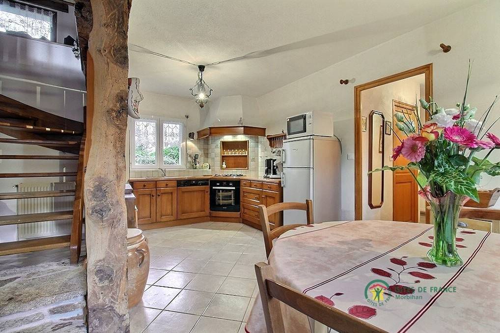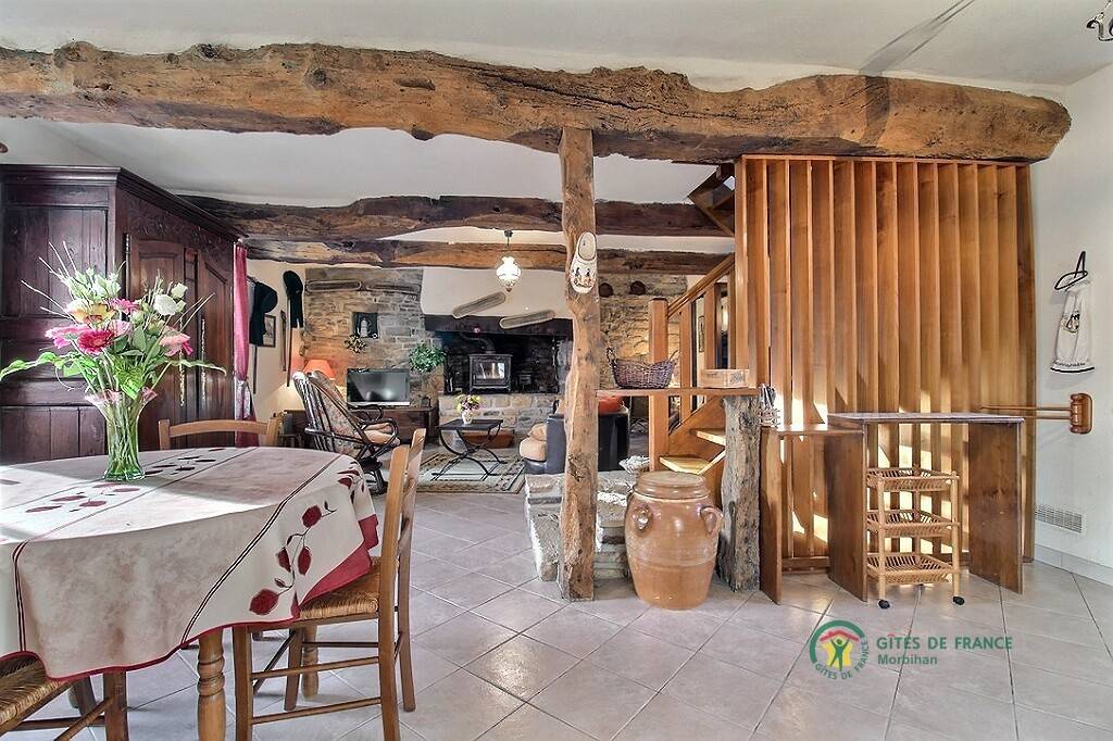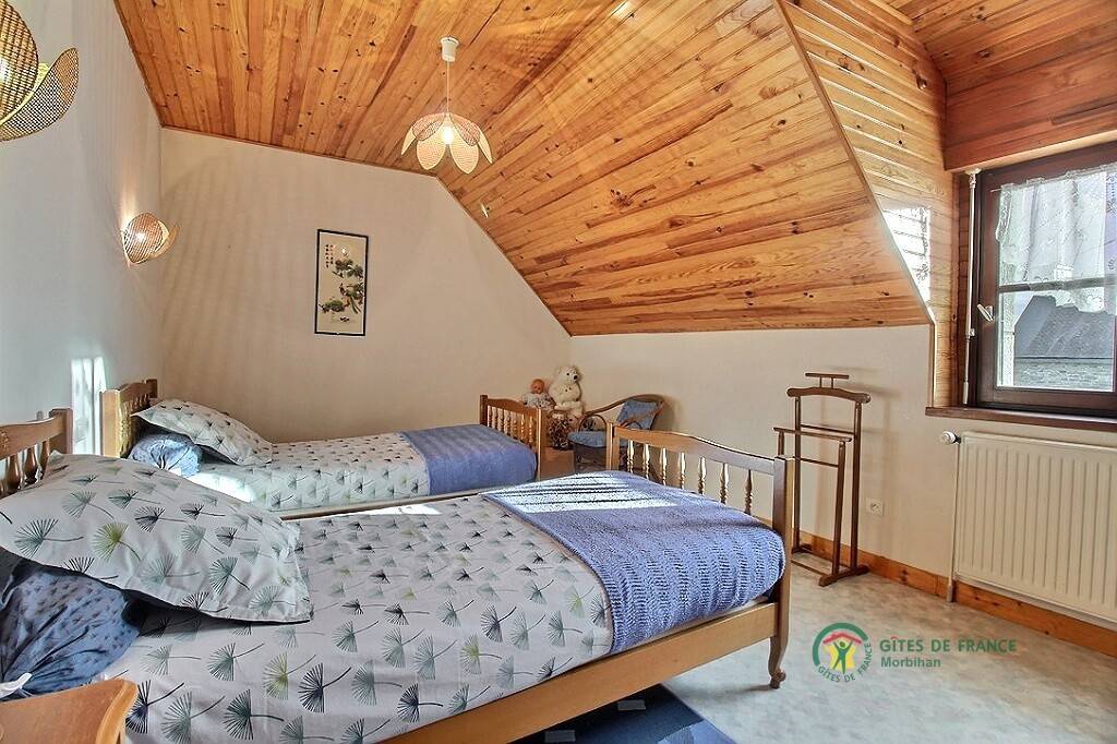 Wunderschöner Bretagne-Urlaub im Blavet-Tal: wer die Natur, Outdoor-Aktivitäten und Besichtigungen liebt, ist hier richtig. Der Blavet ist ein Fluss vielen Schleusen: die Natur lässt sich hier besonders gut beobachten, von Pontivy bis Hennebont. Mittelalterliche Festungsstadt: Willkommen in Hennebont. Ein Stadtbummel bietet sich an, besonders am Donnerstag, denn da ist Markttag. Typisch bretonisches Ferienhaus auf dem Land, freistehend mitten im Grünen in Inzinzac-Lochrist. Ländliches Ambiente. Erdgeschoss: Wohnbereich mit Kochecke /Ess- und Wohnzimmerecke, Bad mit Dusche und separates WC. 1. Stock: 3 Zimmer (1 Doppelbett, 3 Einzelbetten davon eines 110, 1 Babybett), Bad mit Dusche, WC. Eigener geschlossener Garten 300 m², Terrasse, überdachter Abstellplatz. Spaziergänge auf dem GR341 (4 km) und im Tremelin-Wald. Boules-Spielplatz gemeinsam mit dem Ferienhaus 9020 in der Nachbarschaft (Trennwand durch Holzpalisaden). Kleintiere vor Ort (Hühner, Enten, Kaninchen). Zuzüglich Nebenkosten.