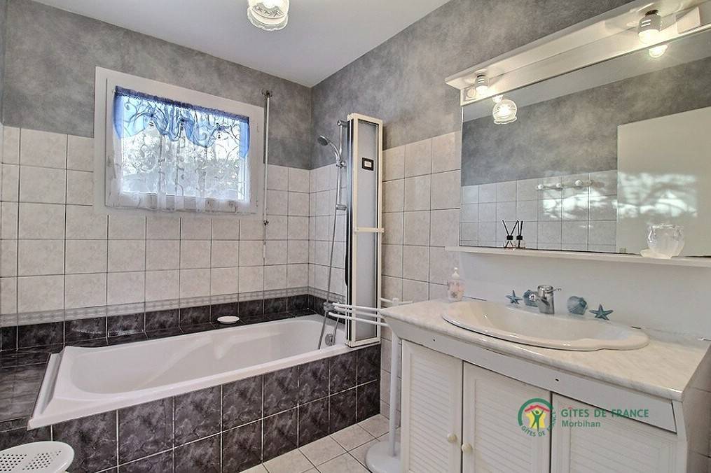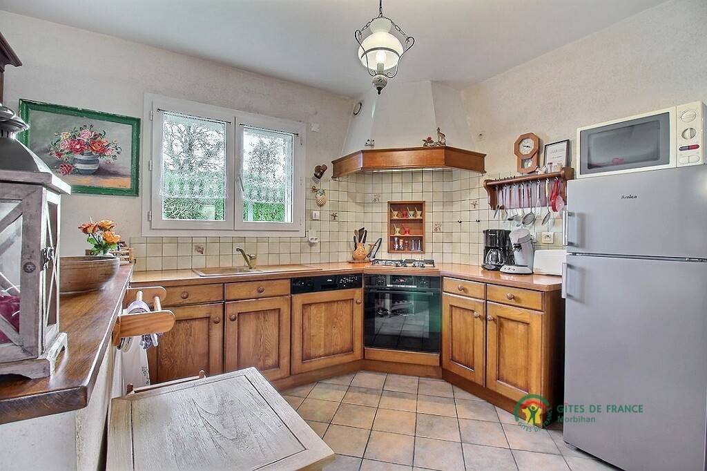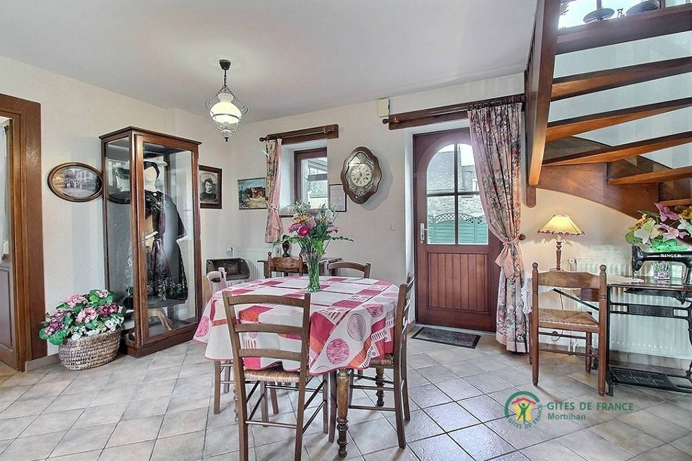 Detached gite near gite no 9023 (separated by a fence) in a group of dwellings, 2.5km from INZINZAC- LOCHRIST. Living room/fitted kitchen corner / sitting area, fireplace (woodburner). 3 bedrooms -2 are ensuite- (1 double bed, 3 single beds, 1 child bed -beds ready on arrival- ), bathroom, shower/WC, WC. Gas central heating. Laundry room. Garden 300m², terrace, garden furniture, BBQ, shelter, table tennis.Shared boules alley. The gite is tastefully furnished and nicely decorated in a farm style. The owners have animals (chickens, ducks, rabbits) that the children will enjoy. Letting period from Monday to Monday.
