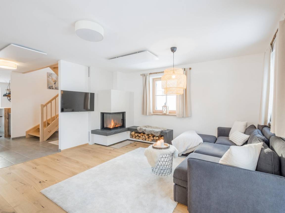 Layout : Parterre: Eingang mit Toilette , Wohnzimmer mit Doppelschlafcouch(160 x 180 cm), TV(smart TV), Esstisch, Ofen(Holz), Sitzecke , offene Küche mit Wasserkocher, Toaster, Kochherd(4 Kochplatten, Ceranfeld, elektrisch), Kaffeemaschine(Filter, nespresso cups), Backofen, Geschirrspüler, Kühl-/Gefrierkombination, Stabmixer , Badezimmer(Fußbodenheizung) mit Dusche, Waschbecken, Waschbecken, Föhn , Abstellraum mit Wäschetrockner, Waschmaschine, Skischuhheizung
