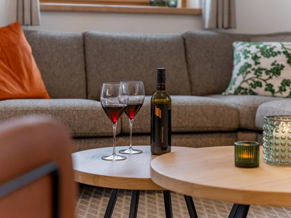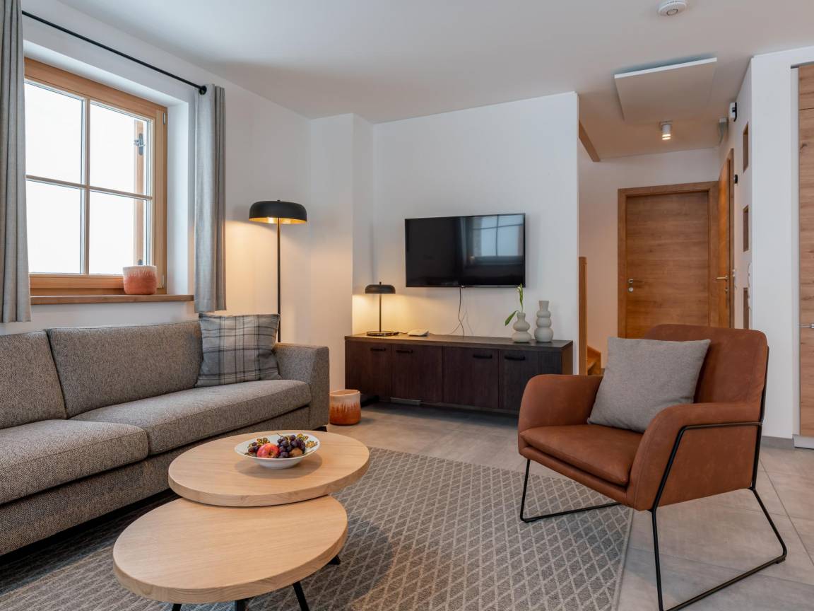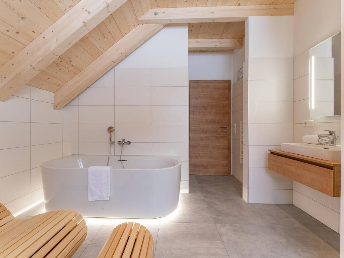 Hausbeschreibung : Das luxuriöse Chalet mit Bergblick ist ideal für eine oder zwei Familien. Im Erdgeschoss befinden sich ein geräumiges Wohnzimmer mit offener Küche, ein Abstellraum, ein WC und ein Schlafzimmer mit Bad, ideal für Urlauber mit eingeschränkter Mobilität. Treffen Sie sich auf der sonnigen Terrasse mit Grill und großem Tisch oder bereiten Sie Ihre Lieblingsmahlzeit in der Küche zu. Im Obergeschoss finden Sie u.a. den Wellnessbereich mit Infrarotliegen, Badewanne und TV. Entspannung und Ruhe!
