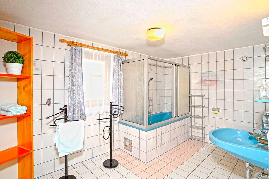 A 90.13 Ferienhaus 1-6 Pers.: Schönes 3 1/2-Zimmerhaus mit 110 qm Wohnfläche über 2 Etagen. Parterre: Gemütliche helle Wohnküche (20 qm) mit Esstisch (8 Pers.), Sat-TV, moderner Küchenzeile (Backofen, Spülmaschine). 3 Doppelzimmer. Bad: Du, Wb, WC. 1. Etage: Kleine Küche mit Esstisch, Sat-TV, Küchenzeile (Backofen). Bad: Du, Wb, WC.