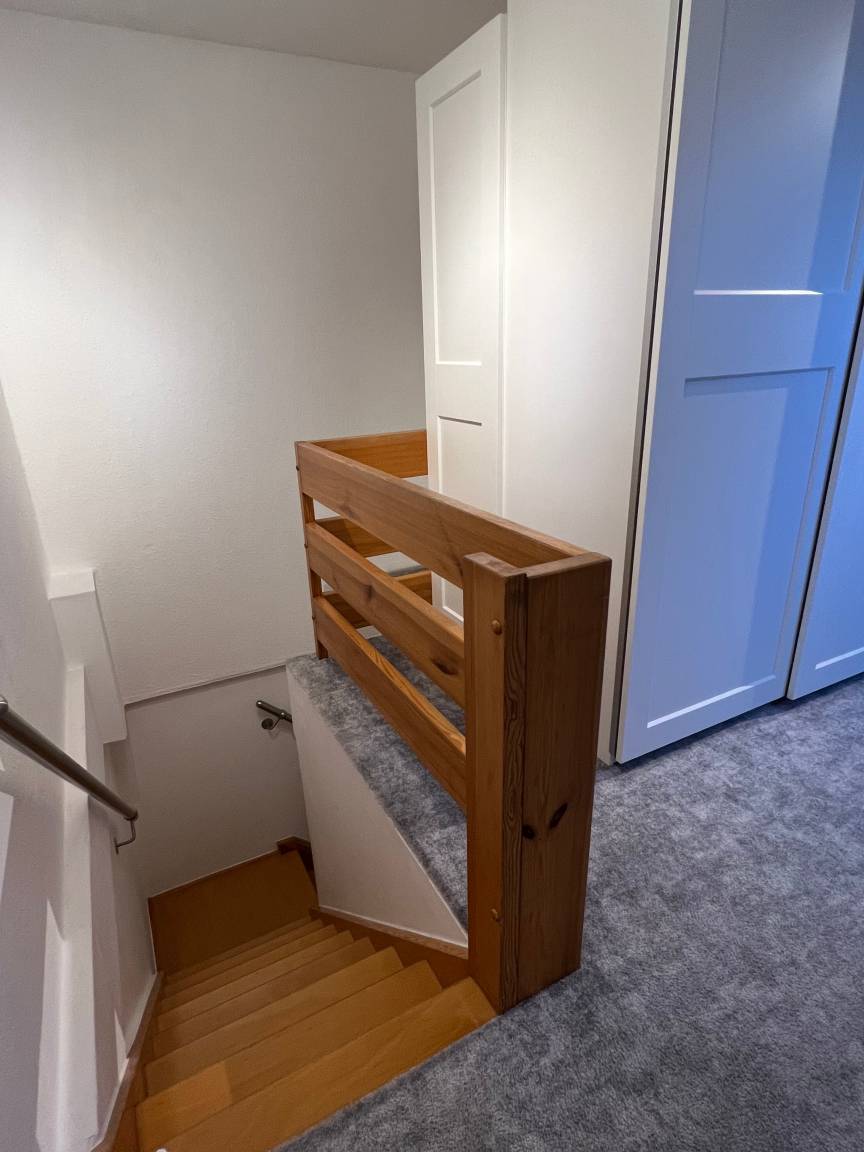 Im Obergeschoss ist eine Galerie (mit ein Einzelbett) , ein separates Badezimmer (mit Dusche) und ein Master-Schlafzimmer. In diesem befindet sich, neben ein Doppelbett, zusätzlich ein Kinderbett, es ist auch genügend Platz um weitere Kinderreisebett, (die mitgebracht werden müssen) aufzustellen.