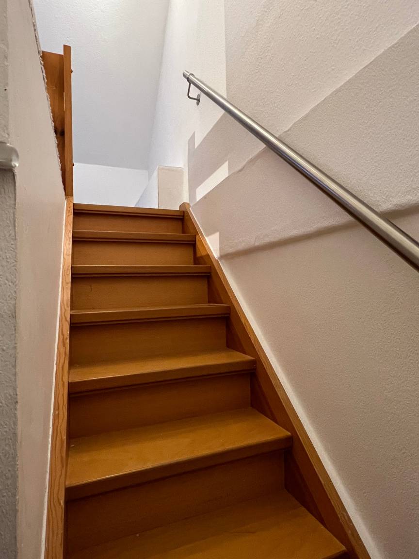 Zwei befinden sich auf der Hauptetage mit Küche, ein separates Bad (mit Dusche und Badewanne), Esszimmer, Wohnzimmer, sowie ein kleiner Balkon und ein überdachte Loggia. Die Küche ist voll ausgestattet mit Spülmaschine, Kaffeemaschine, Toaster und Mikrowelle. Eine Waschmaschine ist im Abstellraum zu finden.