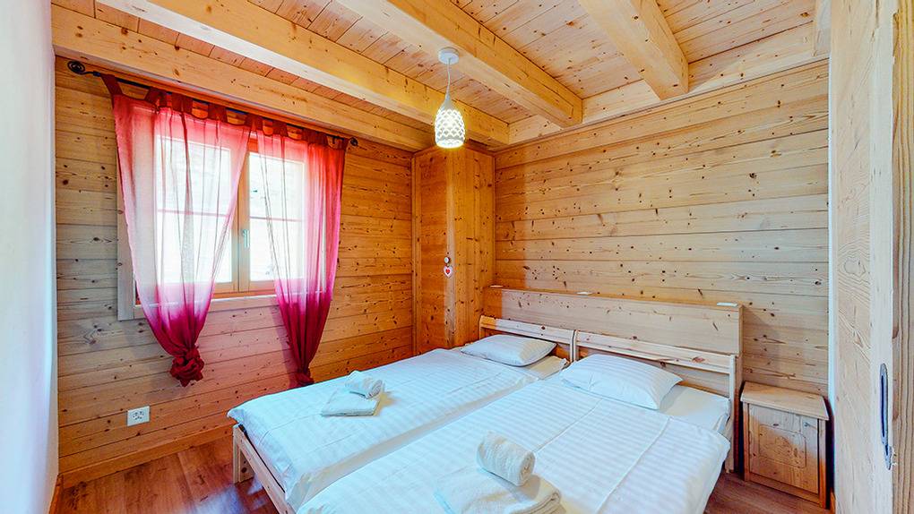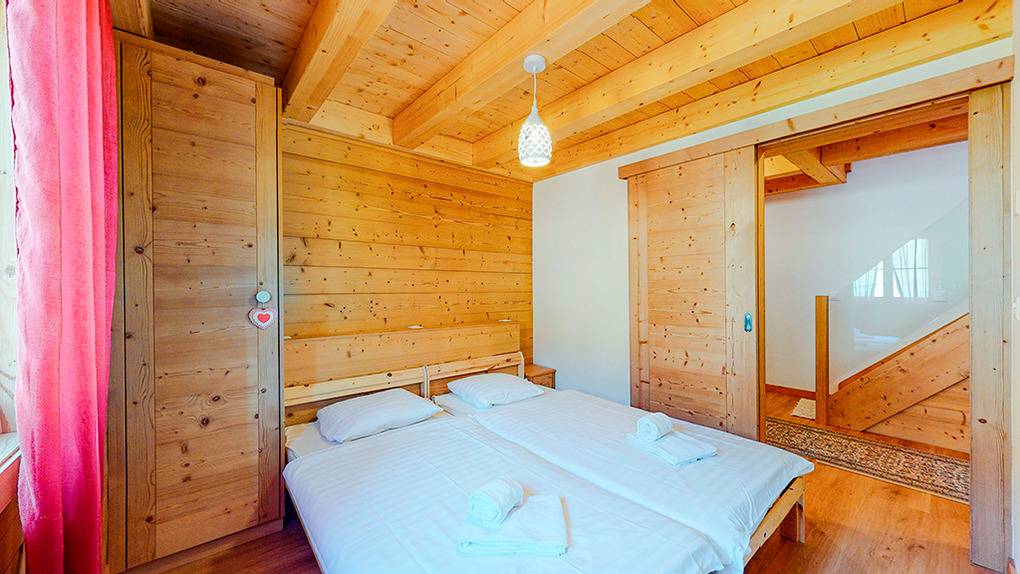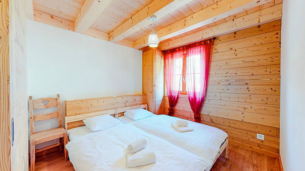 CH 383.70A Wohnung 4-6 Pers.: 3-Zimmerwohnung mit 75 qm Wohnfläche über 2 Etagen. 2. Etage: Wohnraum mit Couchgarnitur (Schlafsofa 2 Pers.), TV, Esstisch, Einbauküche (Backofen, Mikrowelle, Spülmaschine), Balkon. Doppelzimmer. Bad: Du, Wb, WC. Dachgeschoss mit Schrägen: Doppelzimmer. Bad: Bw, Wb, WC.