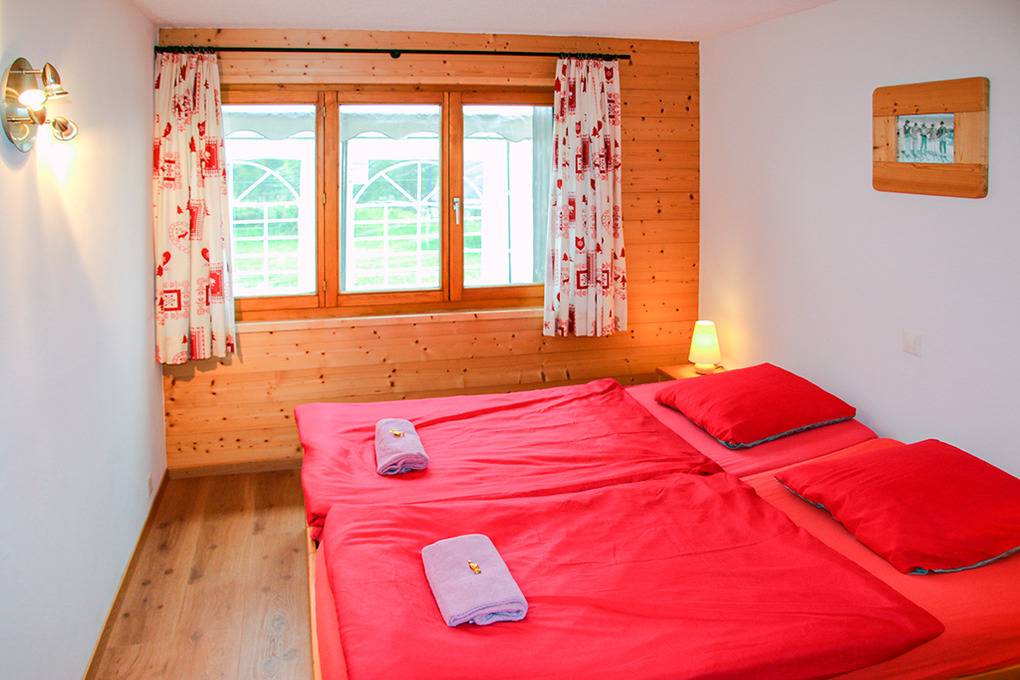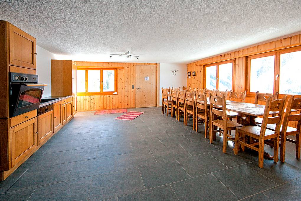 CH 383.72 Wohnung 12-16 Pers.: Großzügige 7-Zimmerwohnung mit 180 qm Wohnfläche, Parterre. Freundlicher Tagesraum mit Sitzecke, TV, Esstischen, gut ausgestatteter Küche (Backofen, Spülmaschine). 4 Doppelzimmer mit Bad (Du, Wb, WC). Doppelzimmer. 6-Bettzimmer mit Doppelbett, Doppel-Etagenbett. Bad: Bw, Du, Wb, WC. Sonnenterrasse mit schönem Blick ins Tal und zum gegenüberliegenden Ort La Tzoumaz.