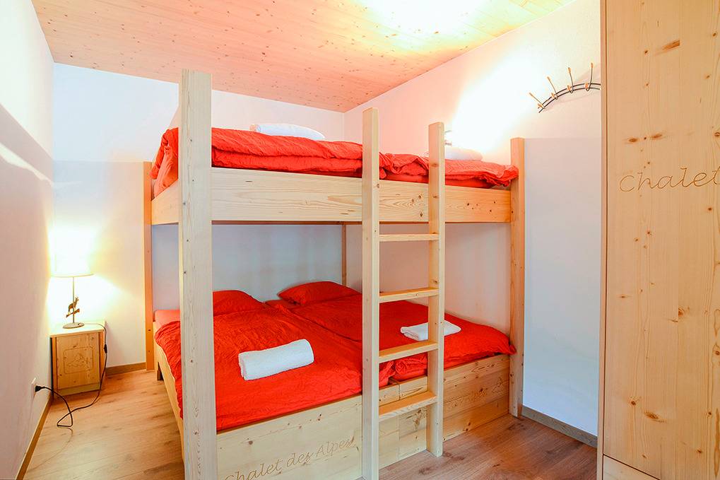 CH 383.70A Wohnung 4-6 Pers.: 3-Zimmerwohnung mit 75 qm Wohnfläche über 2 Etagen. 2. Etage: Wohnraum mit Couchgarnitur (Schlafsofa 2 Pers.), TV, Esstisch, Einbauküche (Backofen, Mikrowelle, Spülmaschine), Balkon. Doppelzimmer. Bad: Du, Wb, WC. Dachgeschoss mit Schrägen: Doppelzimmer. Bad: Bw, Wb, WC.