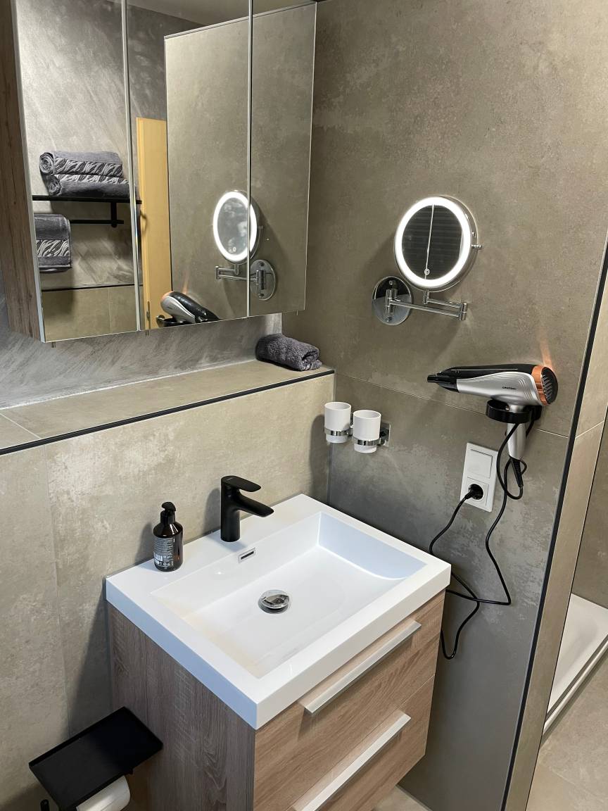 Die Wohnung ist komplett neu renoviert und hochwertig ausgestattet, inkl. Bettwäsche und Handtücher, Waschmaschine , Haartrockner, Kaffeemaschine, Wasserkocher, Geschirr und Besteck, Staubsauger, Boxspringbetten, ebenerdigen Dusche , zwei Terrassen, Stellplatz direkt am Haus.
