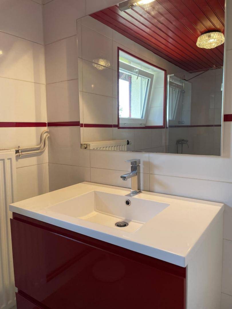 Erdgeschoss: vom Eingang eine Veranda und eine Waschküche mit Waschmaschine und Trockner, voll ausgestattete offene Küche mit Esszimmer, Wohnzimmer, Badezimmer (Dusche) und separates WC. Nehmen Sie den Korridor, steigen Sie über 2 Stufen ein und entdecken Sie 1 Schlafzimmer mit 2 Betten von 90 x 200 cm und 1 Schlafzimmer mit 1 Bett von 140 x 190 cm und 1 Bett von 90 x 200 cm.