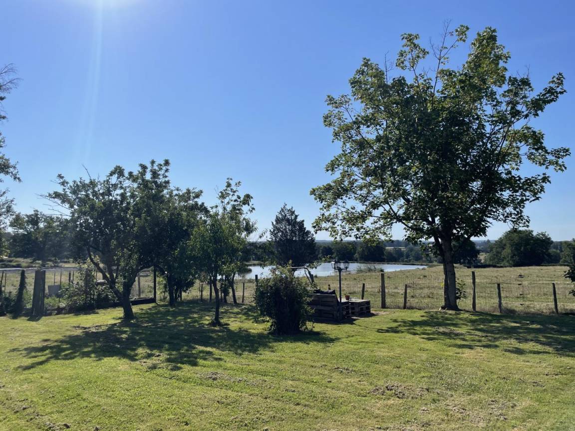 Renoviertes Bauernhaus mit Blick auf die umliegende Landschaft mit eigenem Teich, der Ihnen zur Freude der Fischer zur Verfügung steht.