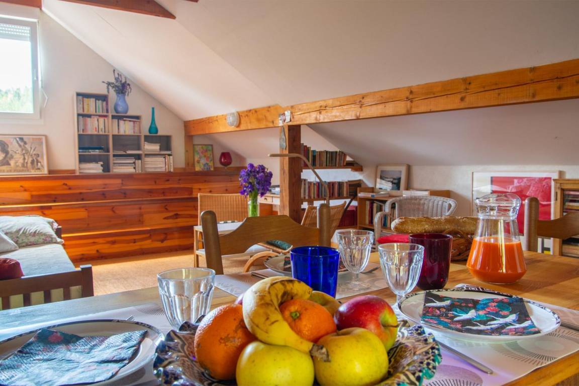 „On y resterait bien un peu plus longtemps...le cadre est magnifique, le son des clarines nous berce, pas un moustique...on s'y sent comme à la maison, au milieu des livres, seule la radio nous donne quelques nouvelles de l'extérieur...une parenthèse indispensable en cette période troublée ! L'accueil, impeccable, fait vite oublier les derniers kilomètres un peu angoissants quand on a pas l'habitude de ces petites routes de montagne. Nous ne pouvons donc que confirmer les commentaires élogieux précédents...“