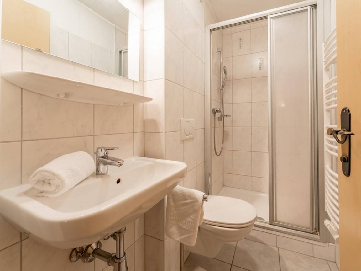 In der 1. Etage: 2x Schlafzimmer mit 2x Einzelbett, Doppelbett , 4x Schlafzimmer mit Doppelbett , Schlafnische mit Etagenbett , 4x Badezimmer mit Dusche, Waschbecken, Toilette , 4x Balkon