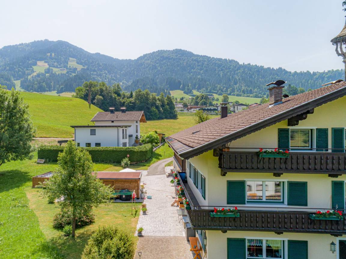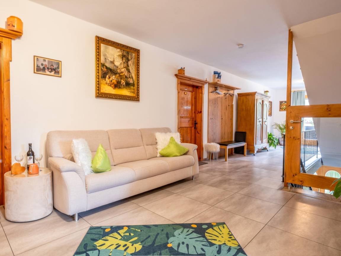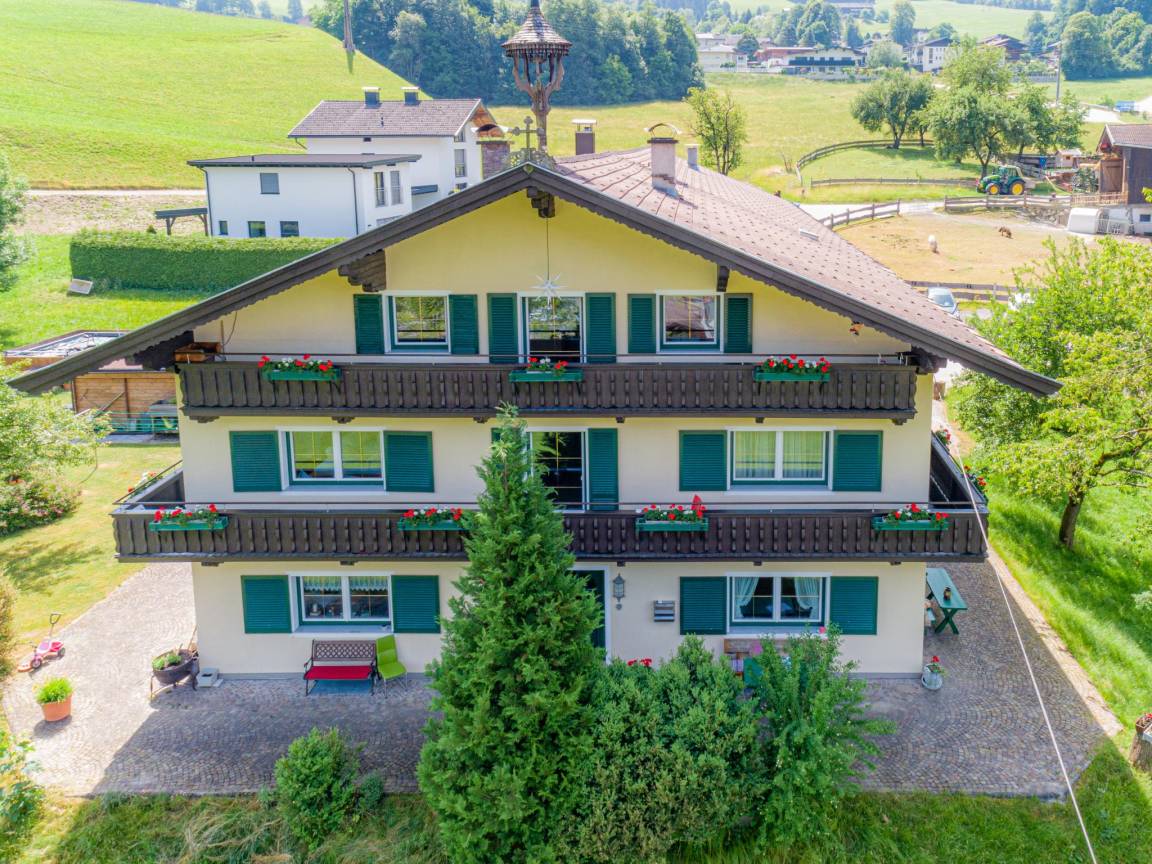Hausbeschreibung : Erleben Sie Tirol pur! Die großzügige Ferienwohnung liegt in den oberen Etagen eines traditionellen Bauernhauses mit nur einem gemeinsamen Eingang. Alle Bereiche sind über den Flur offen verbunden. Es erwarten Sie große Schlafräume, ein gemütlicher Aufenthaltsbereich, eine voll ausgestattete Küche, herrliche Aussicht und Tiroler Gastfreundschaft. Die Hauseigentümerin wohnt im Erdgeschoss und respektiert Ihre Privatsphäre