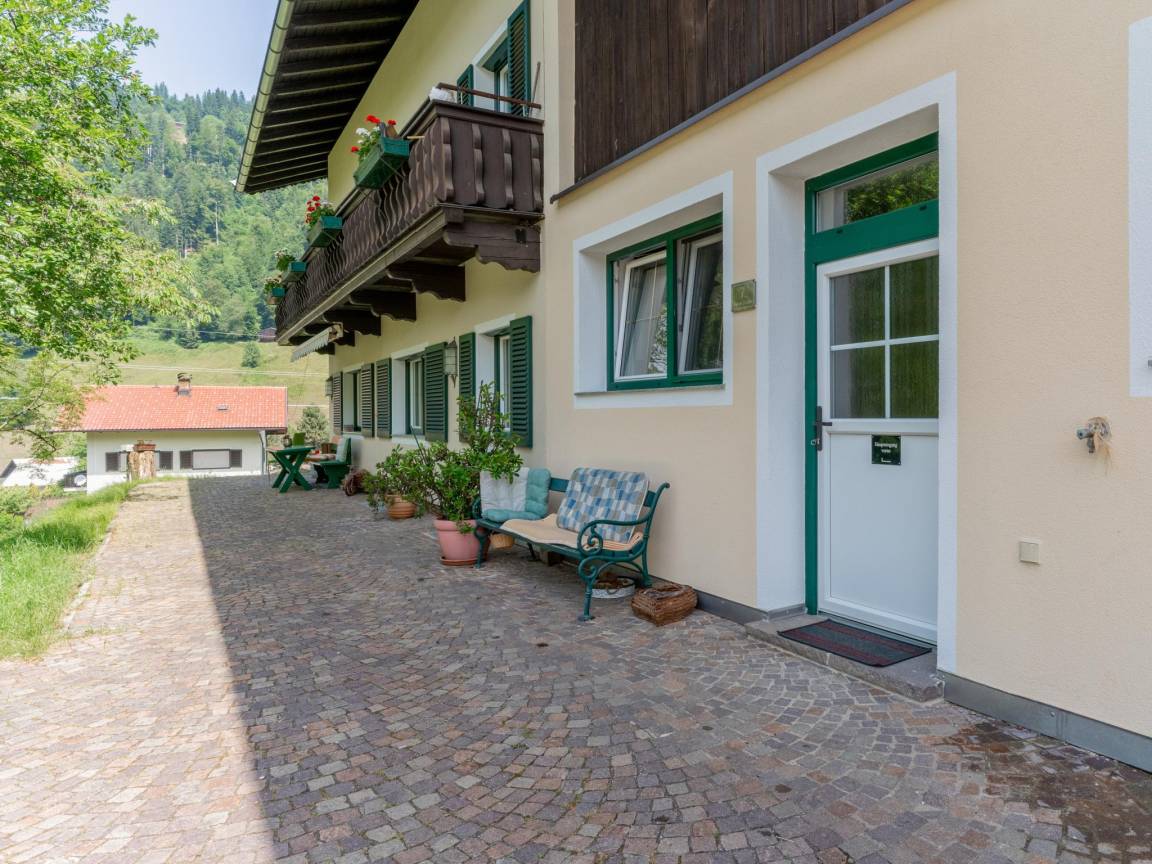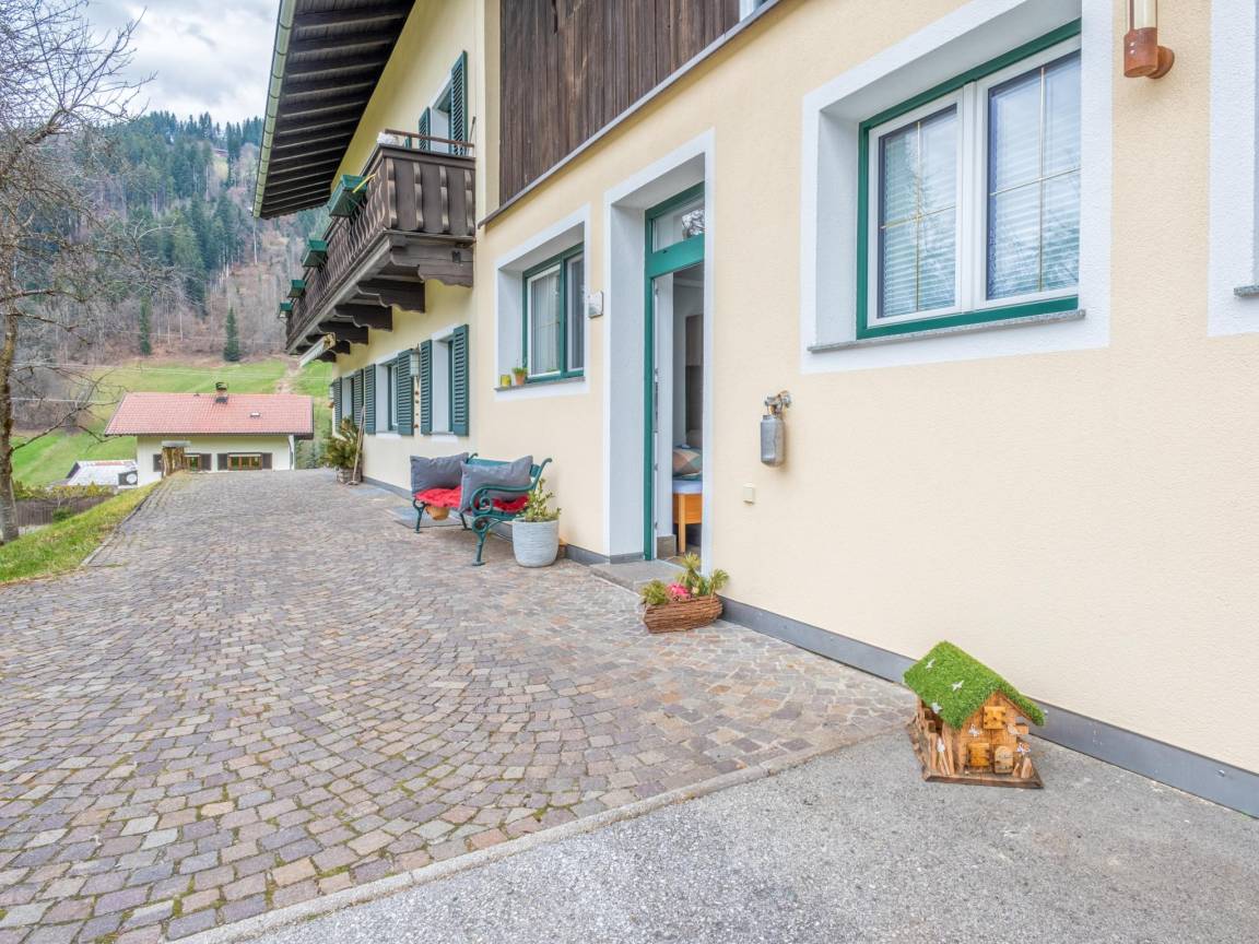 Hausbeschreibung : Die kleine Ferienwohnung im Erdgeschoss des Hintermühltalhofs ist sonnig ausgerichtet und bietet einen wunderbaren ruhigen Ausblick auf die Berge und auf saftige grüne Wiesen, wo es sich die Kühe gerade so richtig gemütlich machen. Die geräumige Unterkunft verfügt über alle Annehmlichkeiten die man sich wünscht - Skiliftnähe, Skibus in wenigen Metern Entfernung, traditionelles Restaurant auf der Straße gegenüber, eine schöne vollausgestattete Küche, großes Badezimmer und eine Sonnenterrasse