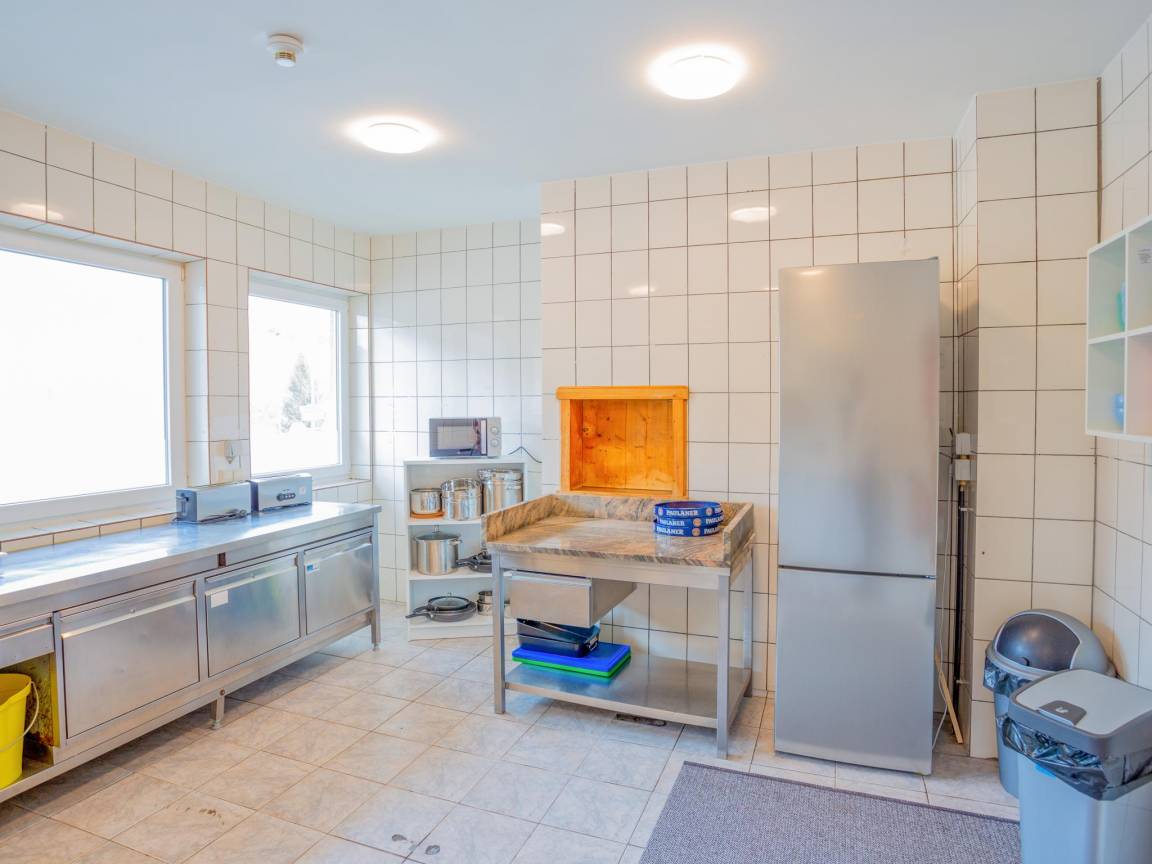 Layout : Parterre: Küche mit Wasserkocher, 2x Kochherd(elektrisch), Kaffeemaschine(Filter), Mikrowelle, Geschirrspüler, Kühlschrank, Tiefkühlschrank , Wohn/Esszimmer mit TV, 8x Esstisch, Sitzecke , Freizeitraum mit Kühlschrank