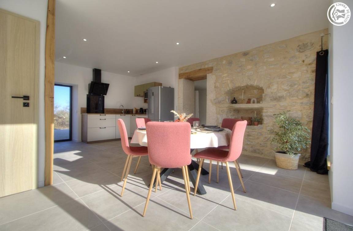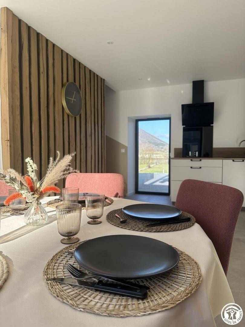 „Nous y sommes venus à 4 adultes (2 générations) et avons tous été totalement séduits. Dès la porte franchie, le salon nous invite à nous y prélasser. Les fauteuils et le canapé sont très confortables. La cuisine fonctionnelle et la partie « Salle à Manger » sont baignées de lumière. La table en bois est magnifique et les chaises également très confortables( assises idéales pour les repas qui durent). À l’étage tout est beau, simple, efficace et la literie au top. Bref, tout a été pensé pour le bien être des hôtes. Un vrai « petit » cocon. Nous avons pu profiter de la piscine à notre guise, même si la température ne s’y prêtait pas forcément. Chloé est souriante, accueillante et reste disponible. Merci à elle pour ce si bel endroit!“