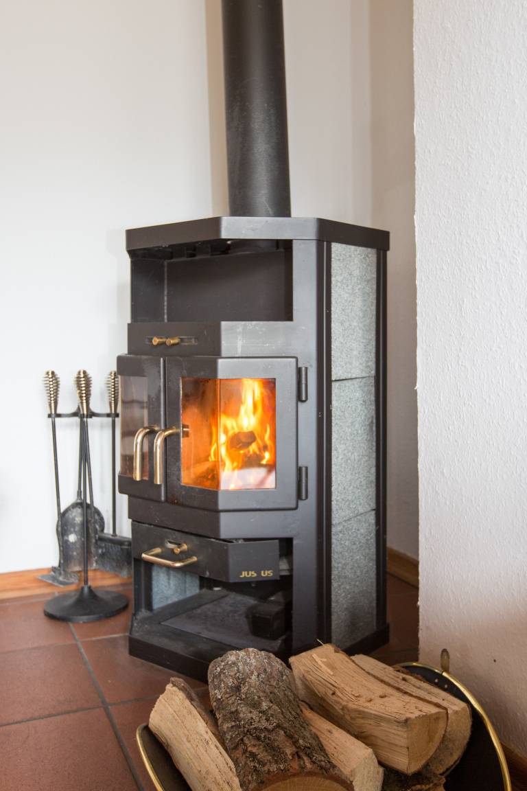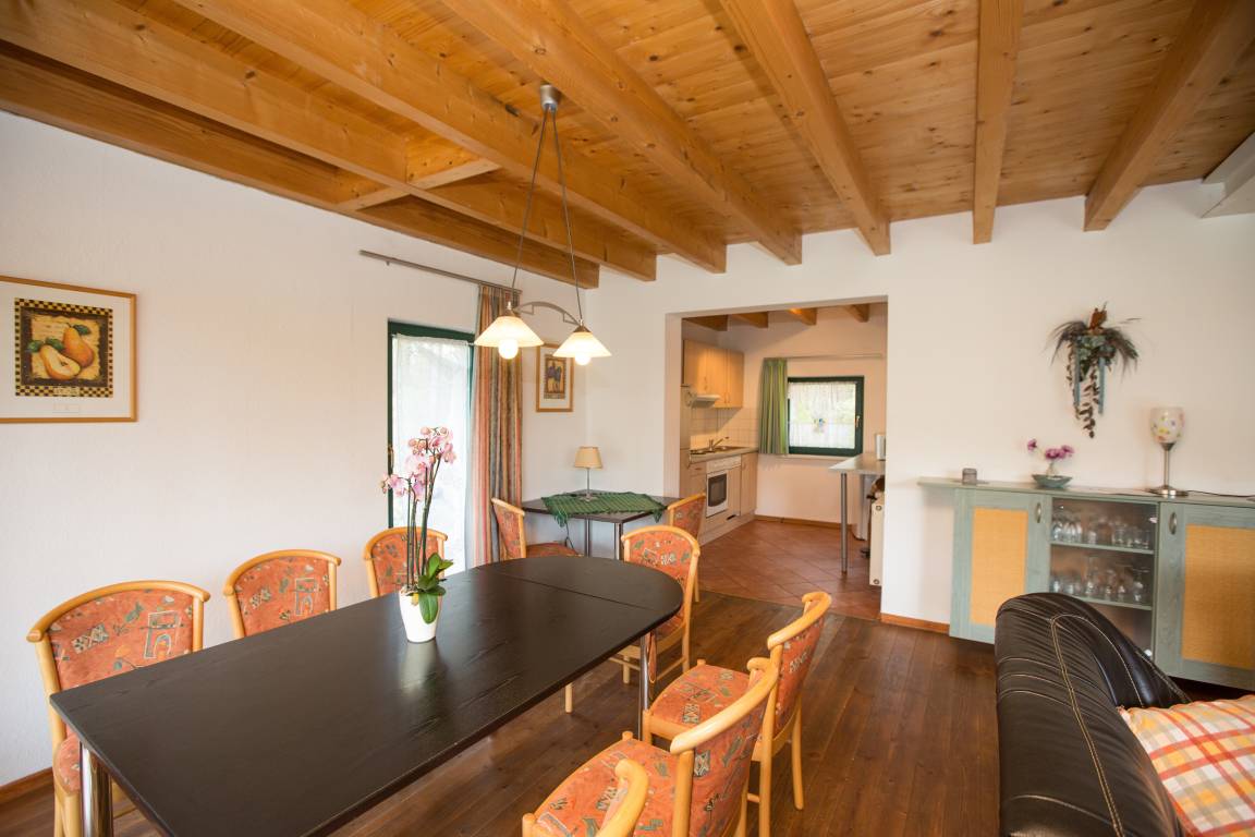 - großzügiger Wohnraum mit Schlafsofa, Essbereich und Kaminofen im EG