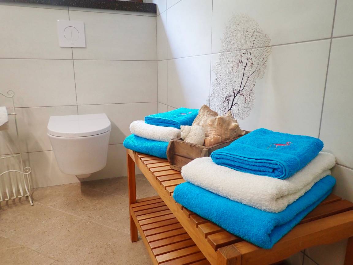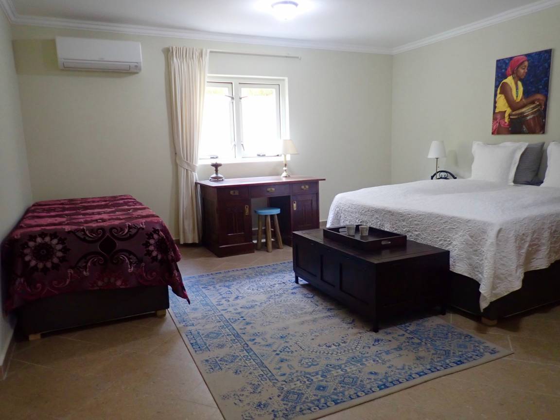 Es verfügt über 3 Schlafzimmer, die jeweils mit Kingsize-Betten, eigenem Bad und Klimaanlage ausgestattet sind. Im gesamten Bereich steht Ihnen Internet über WLAN zur Verfügung. Zur weiteren Ausstattung gehören Handtücher, Strandtücher und Bettwäsche.