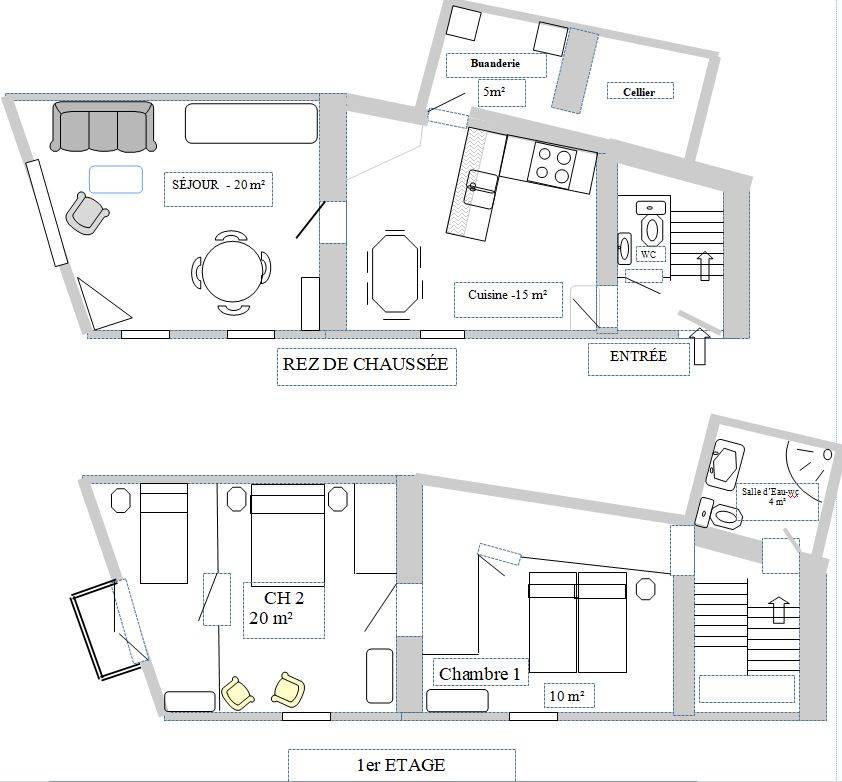80 m² Gîte ∙ 2 Schlafzimmer ∙ 5 Gäste