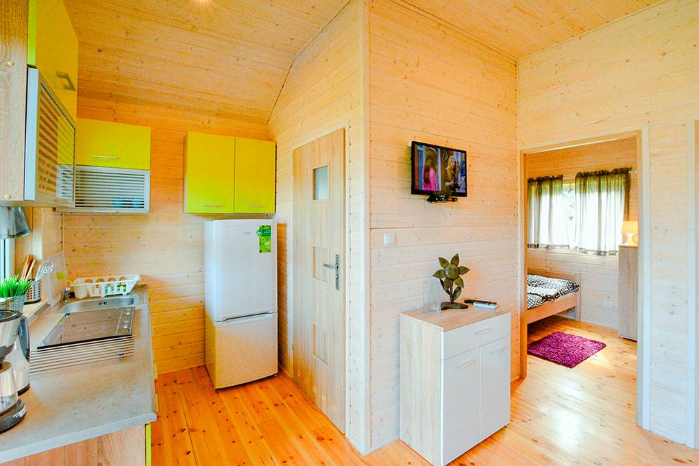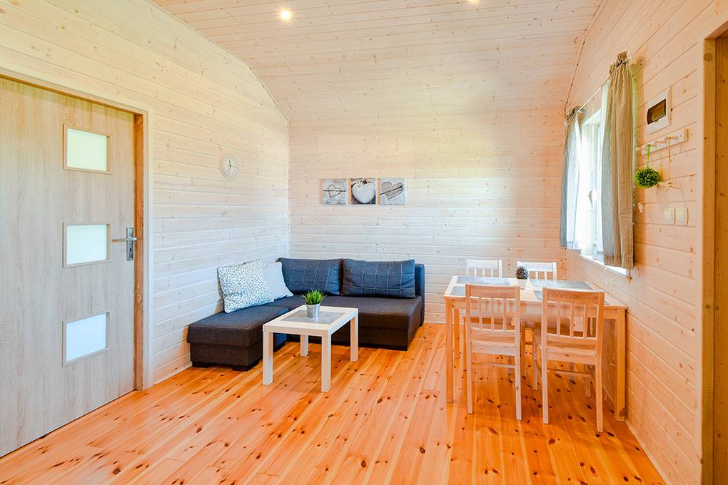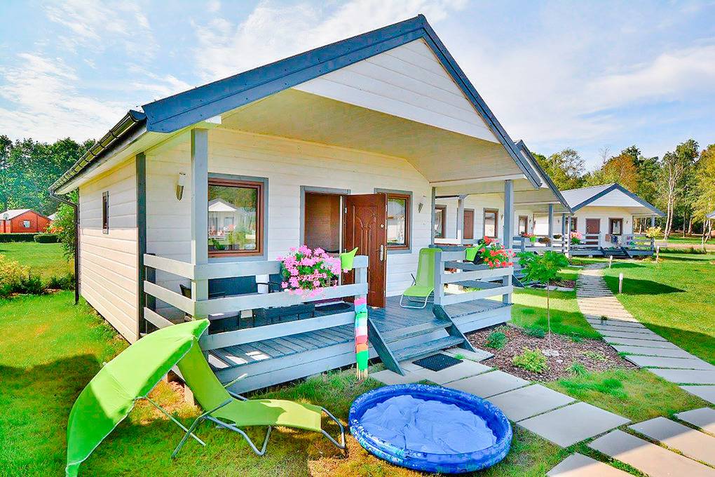 PL 75.11 Ferienhaus 2-5 Pers.: 3-Zimmer-Ferienhaus mit ca. 38 qm Wohnfläche. Erhöhtes Parterre: Wohn-/Essraum mit Sofa (Ausziehcouch 2 Pers.), Sat-TV mit deutschen Programmen, kostenloses Internet (W-Lan), Esstisch, Küchenzeile (2 E-Platten Induktion, Mikrowelle). Bad/WC. Doppelzimmer. 3- Bettzimmer mit Doppelbett, darüber ein Etagenbett. Überdachte und teils verglaste Terrasse mit Sitzmöbeln. Blick auf den liebevoll angelegten Garten, sowie den überdachten Pool.