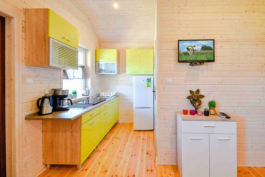 PL 75.11 Ferienhaus 2-5 Pers.: 3-Zimmer-Ferienhaus mit ca. 38 qm Wohnfläche. Erhöhtes Parterre: Wohn-/Essraum mit Sofa (Ausziehcouch 2 Pers.), Sat-TV mit deutschen Programmen, kostenloses Internet (W-Lan), Esstisch, Küchenzeile (2 E-Platten Induktion, Mikrowelle). Bad/WC. Doppelzimmer. 3- Bettzimmer mit Doppelbett, darüber ein Etagenbett. Überdachte und teils verglaste Terrasse mit Sitzmöbeln. Blick auf den liebevoll angelegten Garten, sowie den überdachten Pool.