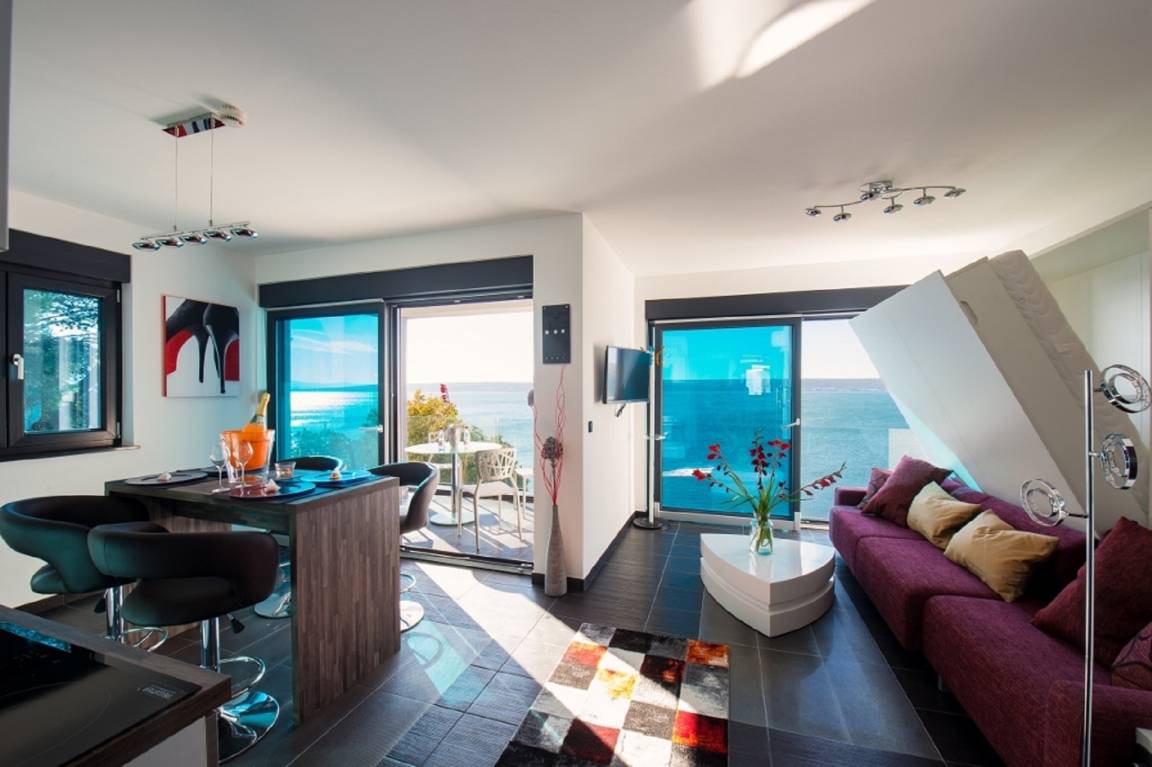 Traumhafte Design Luxus Ferienwohnungen, sowie beste Ausstattungen erwarten Sie. Der Strand befindet sich direkt vor dem Haus. Die Luxuswohnungen Nahe Zadar weisen jeweils eine Wohnfläche von 58m²