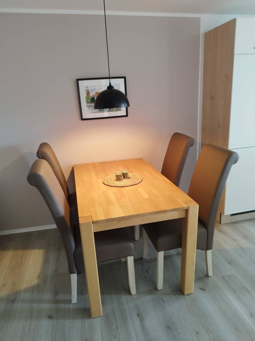 Unsere kleine Ferienwohnung ist hell, ebenerdig, freundlich und bietet Platz für drei Personen.