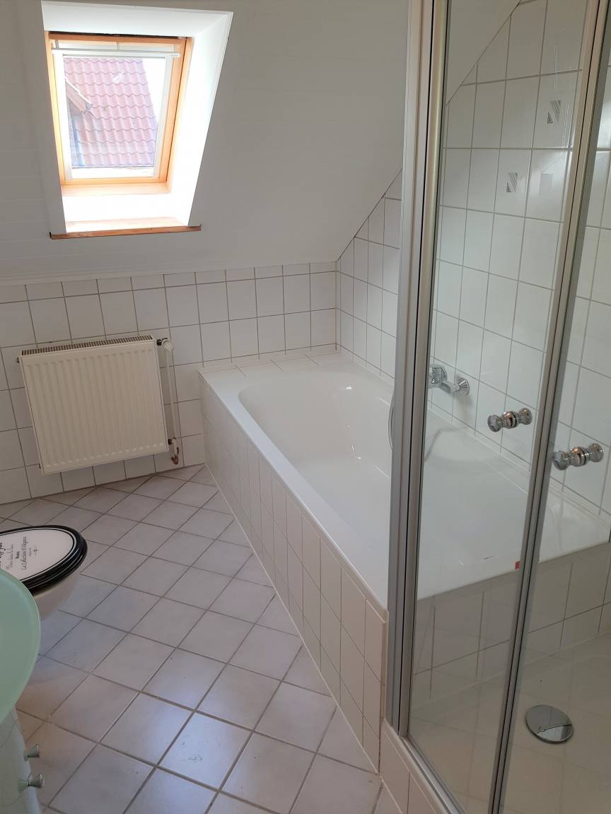 Unser renoviertes Haus bietet auf 120 qm Wohnfläche ein behagliches Wohnzimmer mit Kaminofen und ein großes Esszimmer mit einer gemütlichen Recamiere. Über den Flur gelangen Sie in die vollausgestattete neue Wohnküche mit gemütlicher Sitzecke. Die Küche ist mit Spülmaschine, Mikrowelle, Backofen, Ceranfeld, Kühlschrank, Gefrierschrank, Kaffeemaschine, Toaster und Wasserkocher ausgestattet. Im Erdgeschoss befindet sich außerdem auch noch ein barrierefreies Duschbad mit Waschmaschine. Über eine kleine Treppe gelangen Sie in das Obergeschoss mit rustikalem Holzboden und den drei Schlafzimmern. Zwei davon haben ein Doppelbett und eines ist mit zwei Einzelbetten bestückt. Das zweite Badezimmer im Obergeschoss ist mit einer Badewanne und einer Dusche ausgestattet.