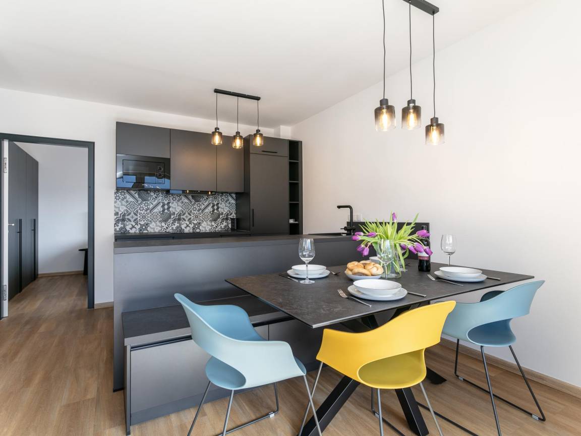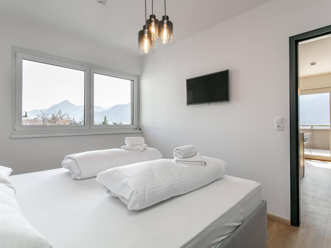 Hausbeschreibung : Modernes Apartement im charmanten Jenbach. Die stilvolle Wohnung ist ausgestattet mit 2 komfortablen Schlafzimmern, einer offenen Küche mit gemütlicher Sitzecke, Bad sowie einer Terrasse. Optimal auch für Businessreisende - WLAN und Waschmaschine sind vorhanden. Der Bahnhof ist nur 15 Gehminuten entfernt und auch sonst ist Jenbach der ideale Ausgangspunkt um Tirol - vor allem den Achensee oder das Zillertal - zu erkunden. Shops und Cafés sowie eine Pizzeria befinden sich in unmittelbarer Nähe