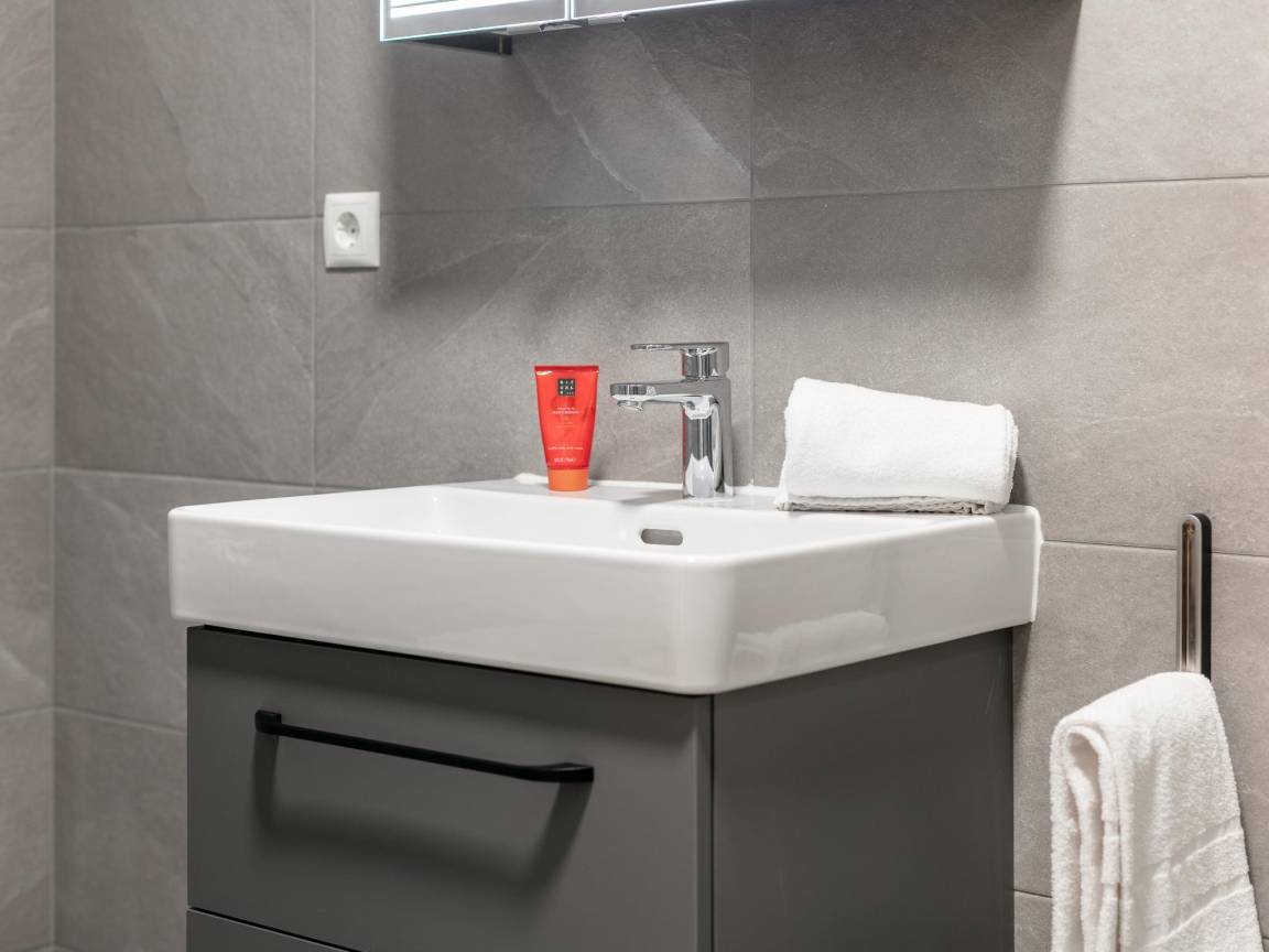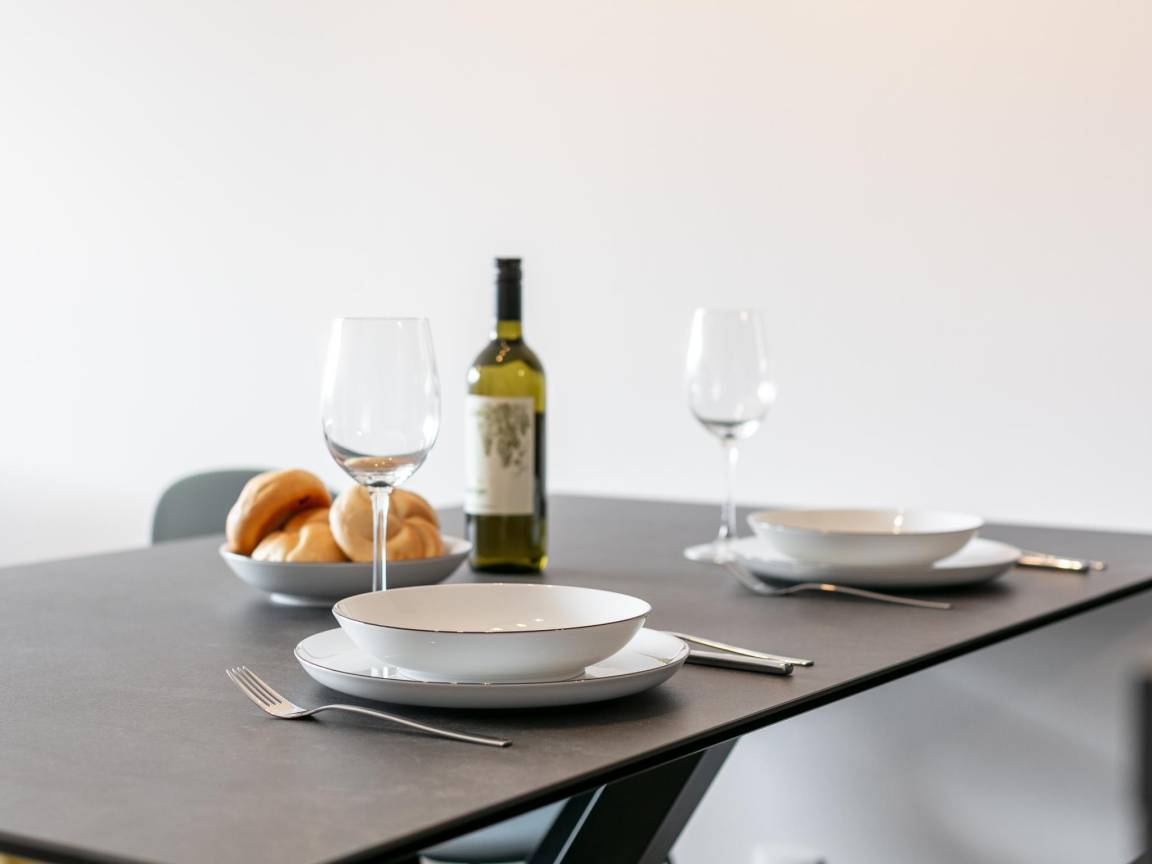 Layout : In der 2. Etage: offene Küche mit Kochplatte, Wasserkocher, Kochherd(4 Kochplatten, Induktion), Kaffeemaschine(nespresso cups), Backofen, Mikrowelle, Geschirrspüler, Kühl-/Gefrierkombination , Wohn/Esszimmer mit TV, Esstisch(6 Personen), Sitzecke , Schlafzimmer mit Doppelbett , Badezimmer mit Dusche, Waschbecken, Toilette , Abstellraum(2 m²), Terrasse(15 m²)