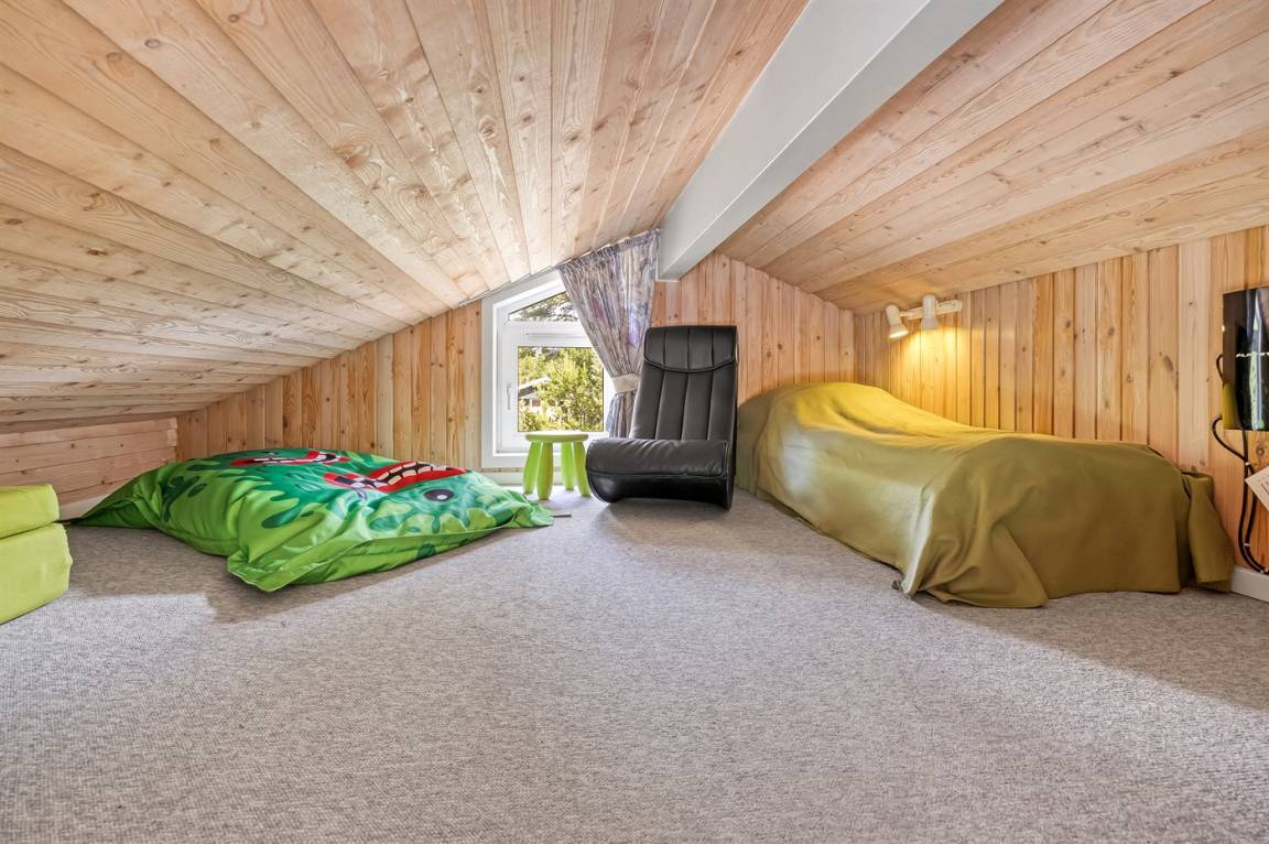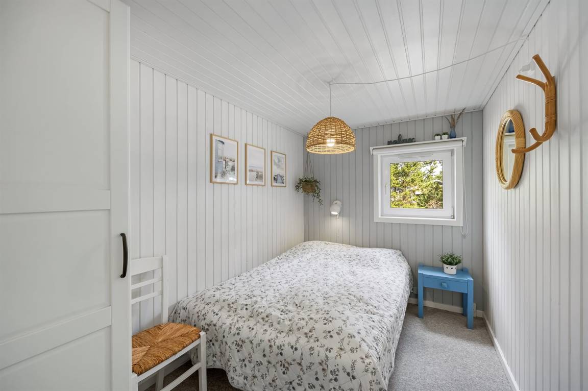 Gepflegtes Ferienhaus in einer Sackgasse, dicht an kinderfreundlichem Badestrand gelegen. Offenes Obergeschoss mit 2 Schlafplätzen auf Matratzen.
