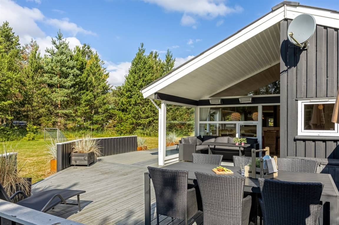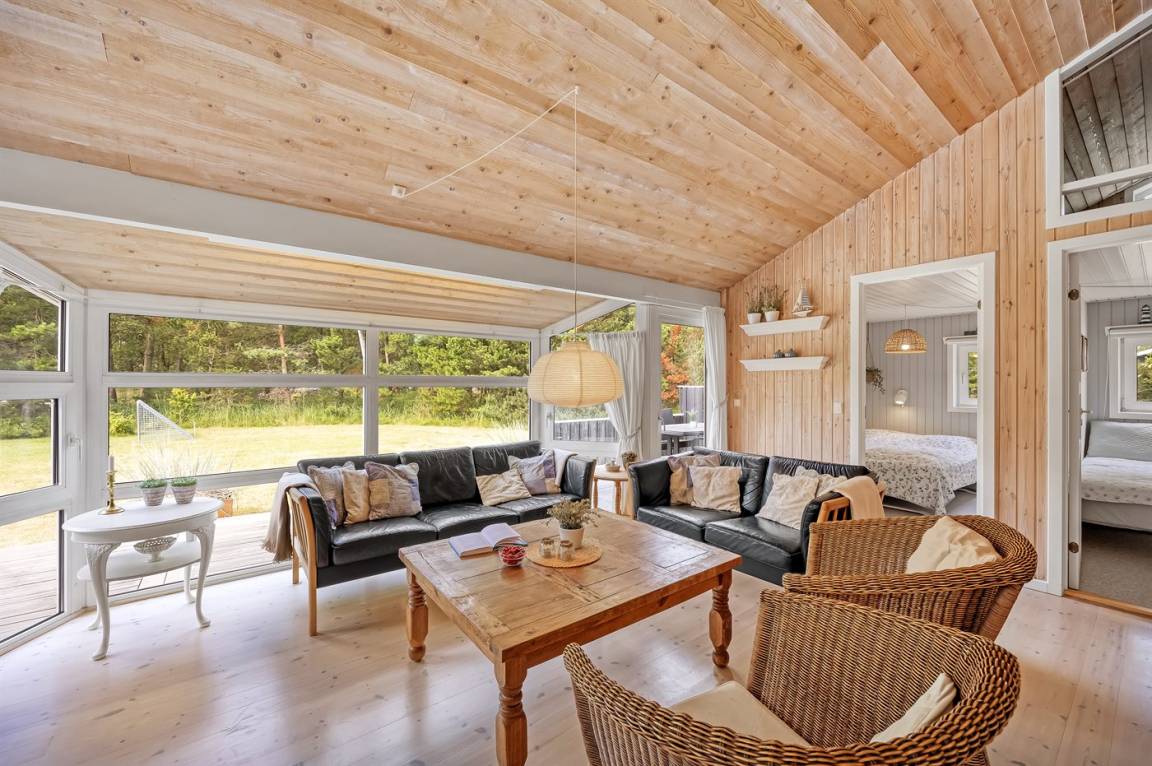 DraußenDie Ferienunterkunft liegt auf einem 2994 m² großen Naturgrundstück. Die Entfernung zum Meer beträgt 300 m. Die nächste Einkaufsmöglichkeit liegt 200 m entfernt. Es steht ein 100 m² Terrassenareal zur Verfügung. Außerdem gibt es 15 m² überdachte Terrasse. Sandkasten. Parkplatz auf dem Grundstück.