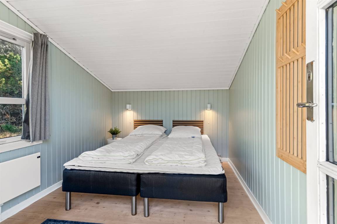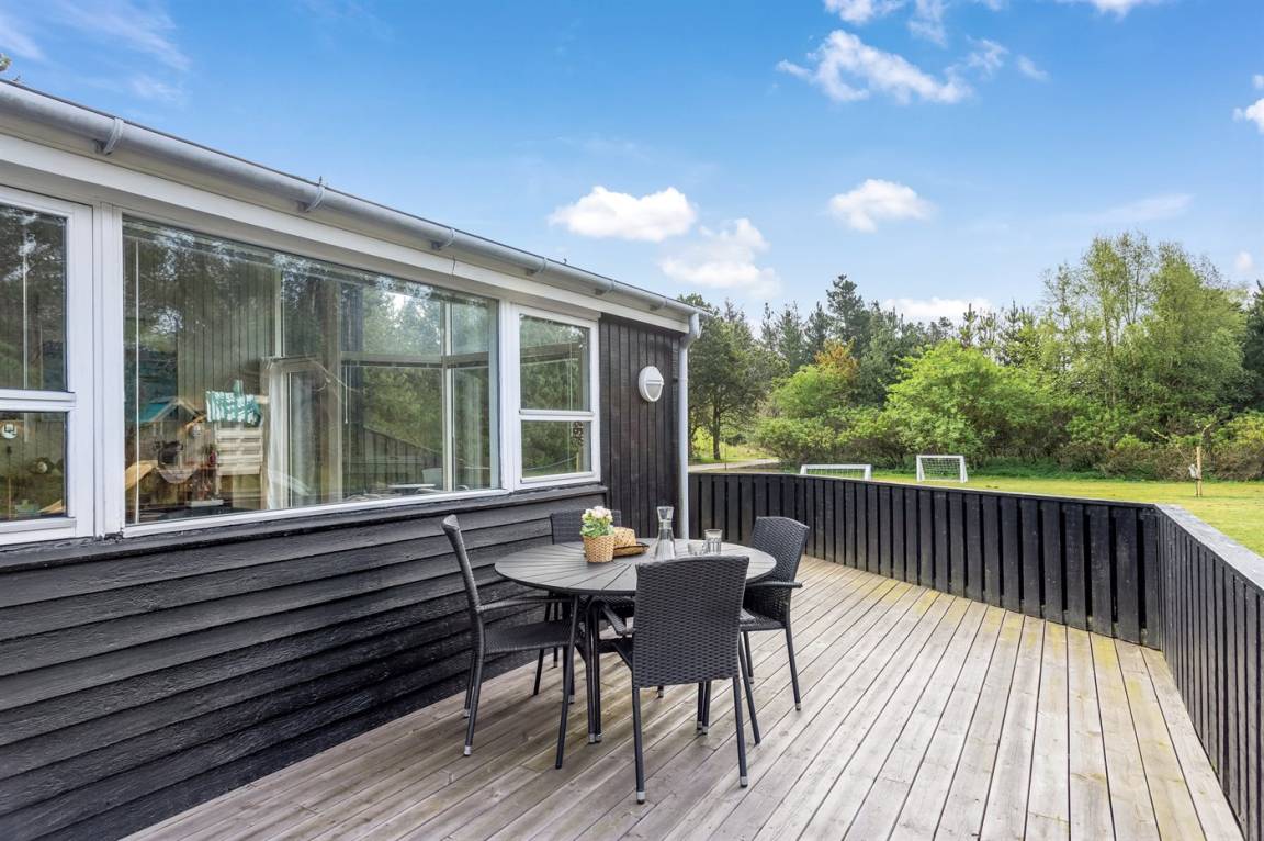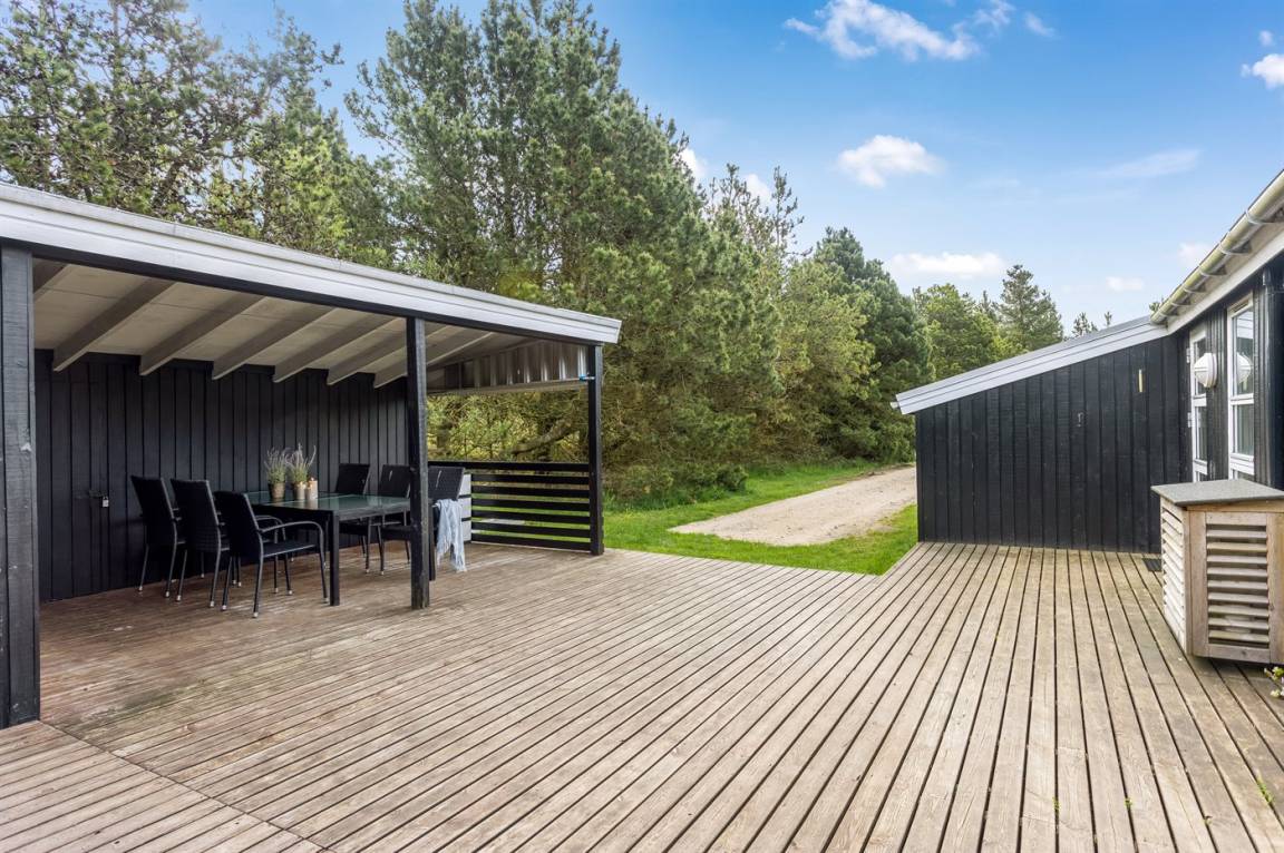 Schönes Ferienhaus auf einem grossen Grundstück nur 250 m von gutem, kinderfreundlichem Sandstrand entfernt gelegen. Zum Haus gehört eine offene Terrasse mit Gartenmöbeln und gutem Windschutz sowie eine überdachte Terrasse. Gästehaus mit Doppelbett.