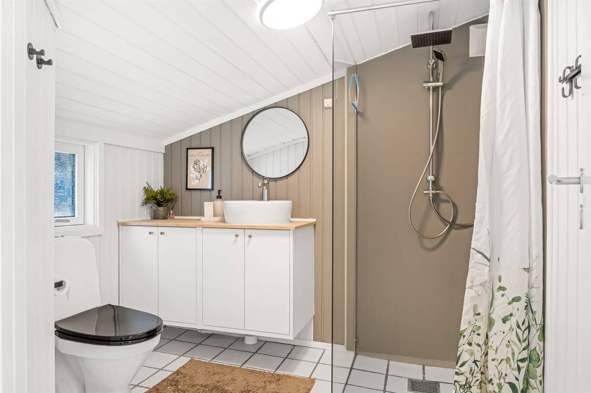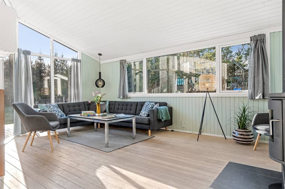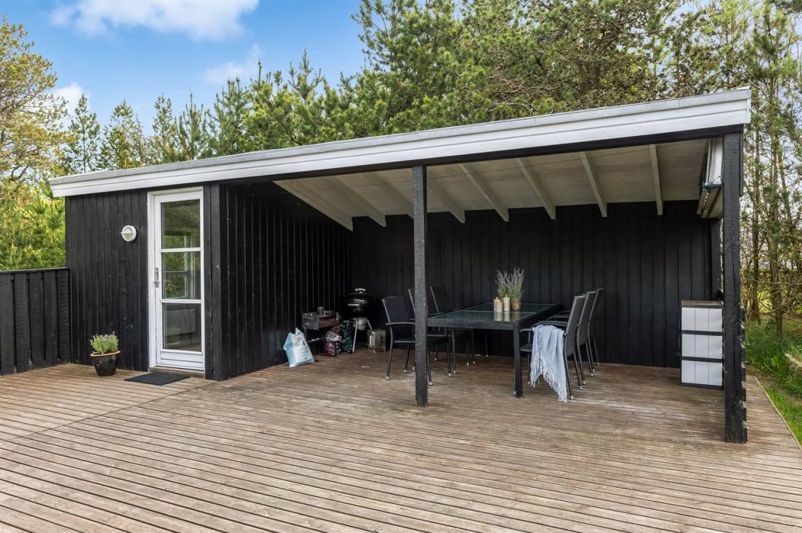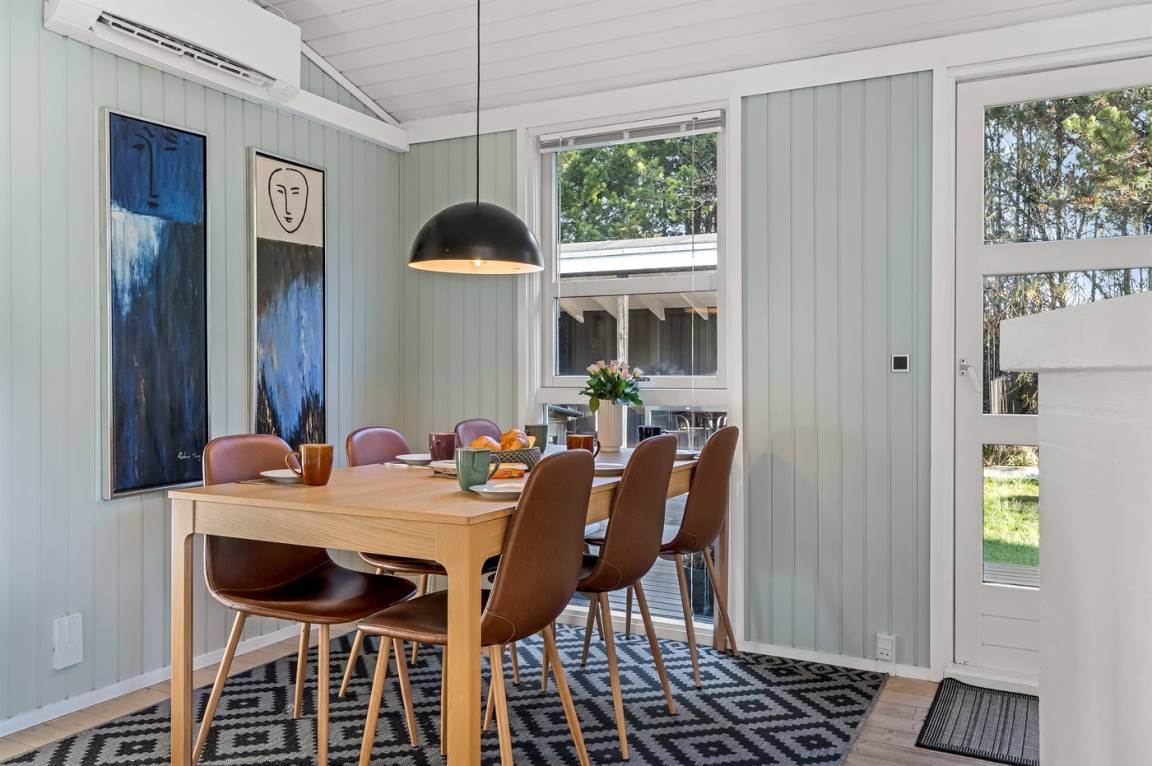 Schönes Ferienhaus auf einem grossen Grundstück nur 250 m von gutem, kinderfreundlichem Sandstrand entfernt gelegen. Zum Haus gehört eine offene Terrasse mit Gartenmöbeln und gutem Windschutz sowie eine überdachte Terrasse. Gästehaus mit Doppelbett.