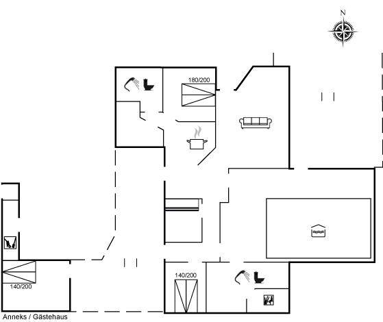 DraußenDie Ferienunterkunft liegt auf einem 2500 m² großen Naturgrundstück. Die Entfernung zum Meer beträgt 250 m. Die nächste Einkaufsmöglichkeit liegt 400 m entfernt. Es steht ein 105 m² Terrassenareal zur Verfügung. Außerdem gibt es 20 m² überdachte Terrasse. Geräteraum. Schaukel. Sandkasten. Kinderspielhaus. Spielturm. Rutsche. Fußballtor.
