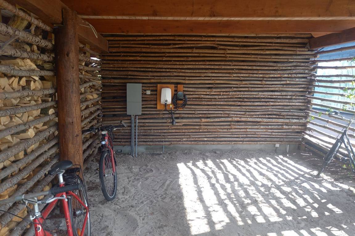 DraußenDie Ferienunterkunft liegt auf einem 2500 m² großen Naturgrundstück. Die Entfernung zum Meer beträgt 400 m. Die nächste Einkaufsmöglichkeit liegt 1200 m entfernt. Es steht ein 120 m² Terrassenareal zur Verfügung. Gasgrill mit gratis Gas. Es steht ein Carport zur Verfügung. Es ist ein Ladestecker für Elektroautos installiert. Mit einer Ladeleistung von 11 kW. Parkplatz auf dem Grundstück.