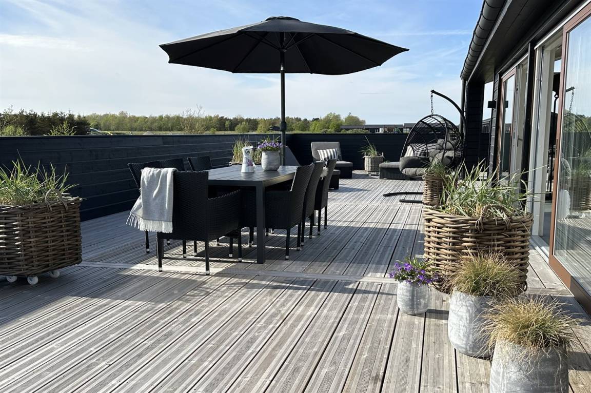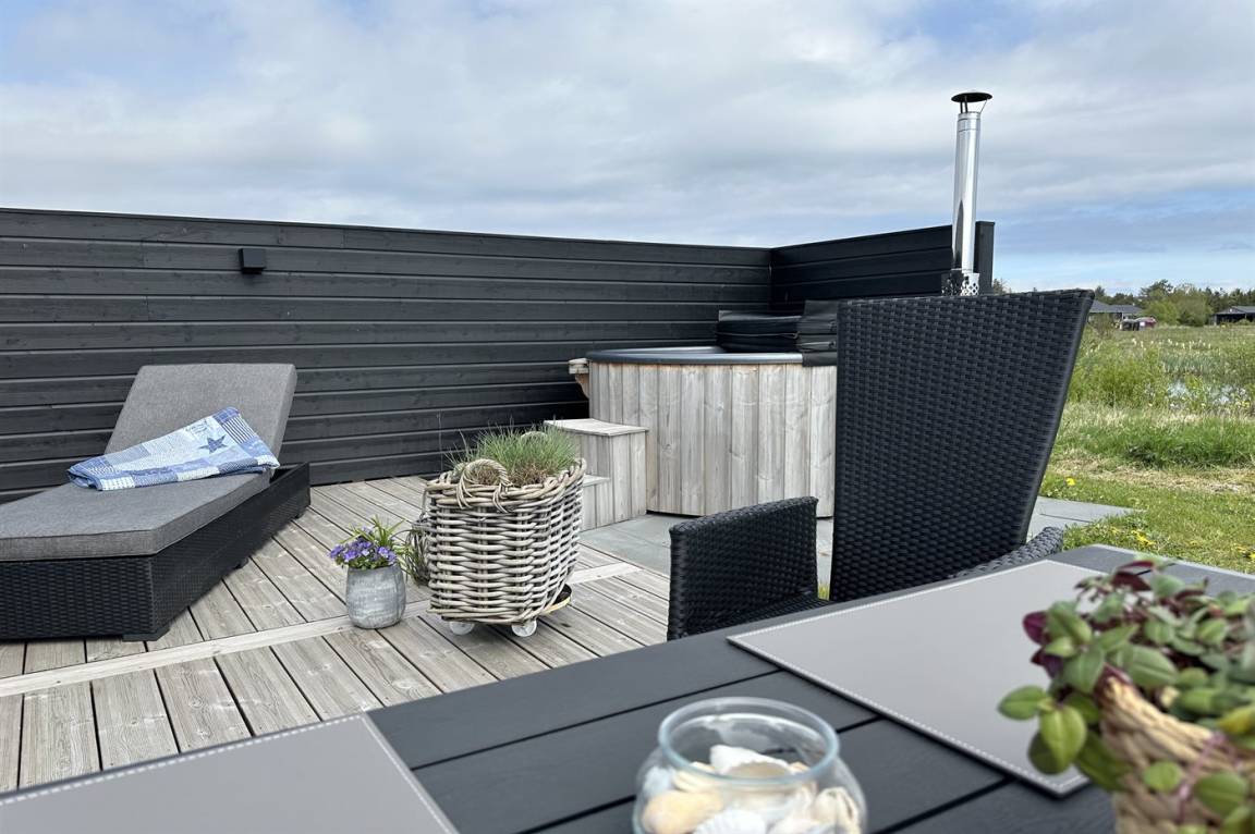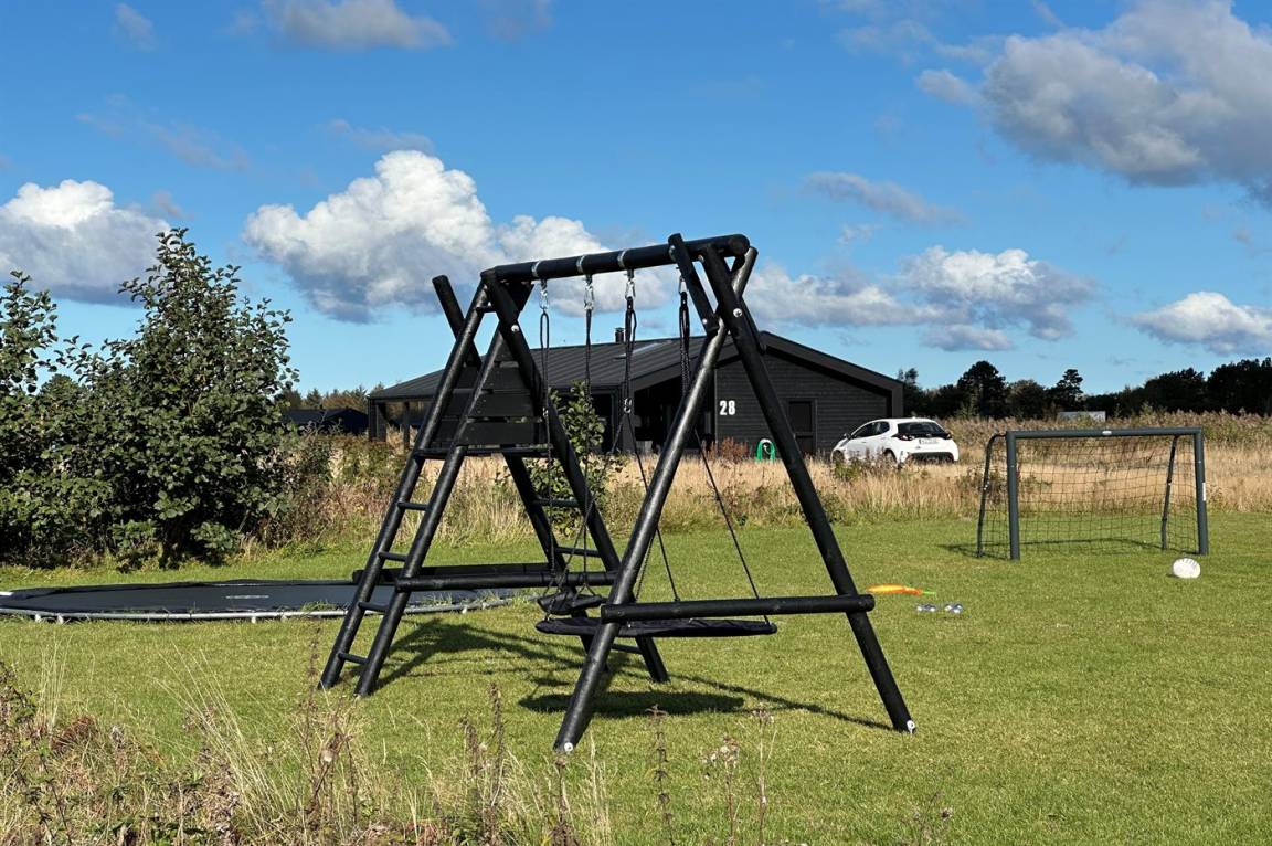 DraußenDie Ferienunterkunft liegt auf einem 2594 m² großen Naturgrundstück. Die Entfernung zum Meer beträgt 900 m. Die nächste Einkaufsmöglichkeit liegt 4000 m entfernt. Es steht ein offenes Terrassenareal zur Verfügung. Außerdem gibt es überdachte Terrasse. Geräteraum. Schaukel. Trampolin. Fußballtor. Außendusche. Es steht ein Grill zur Verfügung. Es ist ein Ladestecker für Elektroautos installiert. Mit einer Ladeleistung von 11 kW. Parkplatz auf dem Grundstück.