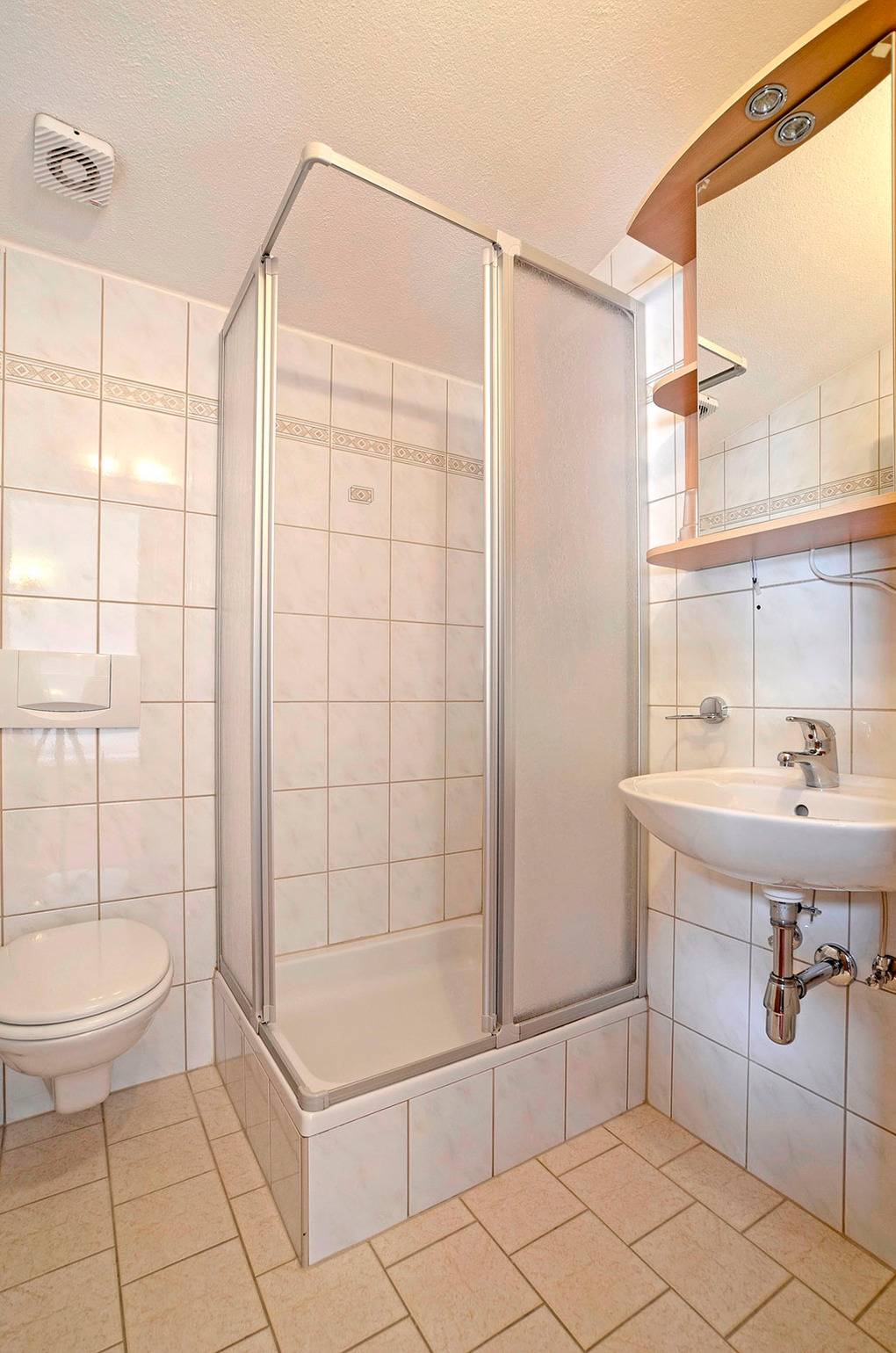1. Etage: 8 Doppelzimmer mit TV, Bad. Einzelzimmer mit Bad. 3-Bettzimmer mit Doppelbett, Einzelbett, TV, Bad.