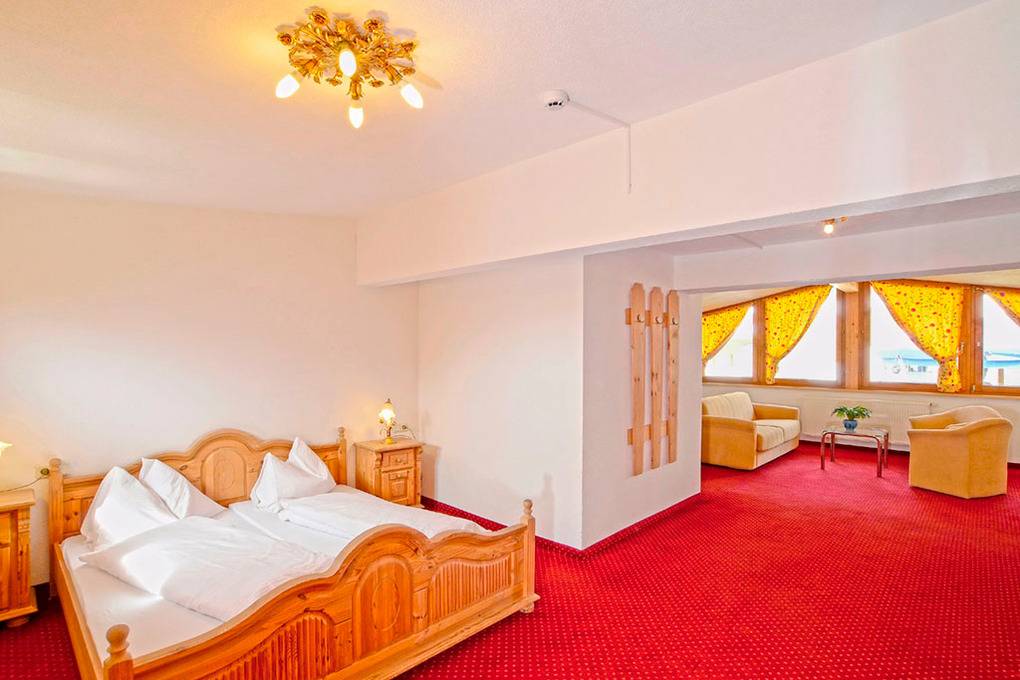 Haus: Ehemaliges Hotel, das ab sofort als komfortables Gruppenhaus vermietet wird. Hochwertiges Ferienhaus mit 12 Zimmern, 300 qm Wohnfläche über 3 Etagen. Es bietet 2 großzügige Gastsstuben mit rustikaler Holzbalkendecke und eine schöne Panoramaterrasse mit herrlichem Blick auf die Pitztaler Alpen. Schöne Schlafzimmer, alle mit Sat-TV, Bad (Du, Wb, WC), fast alle mit Balkon. Großer Saunabereich mit Ruheraum (Sauna gegen Gebühr). Sportgeschäft mit Haus.